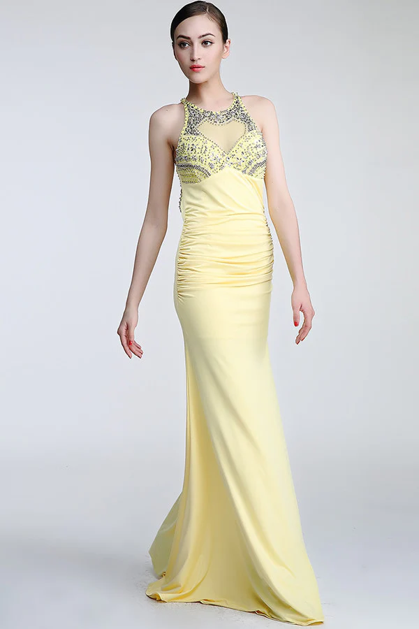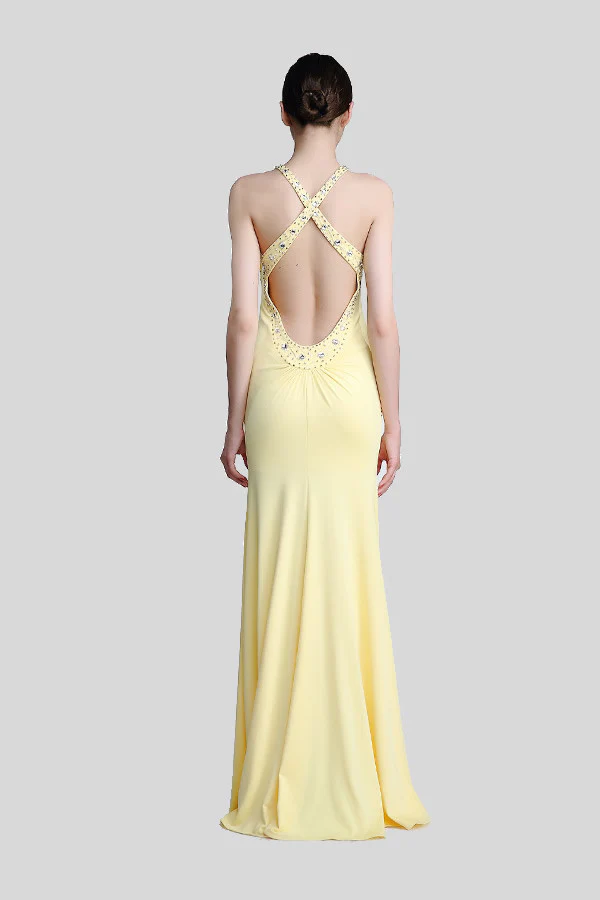 Daffodil Long Beaded Open Back Prom Evening Dress ED0837