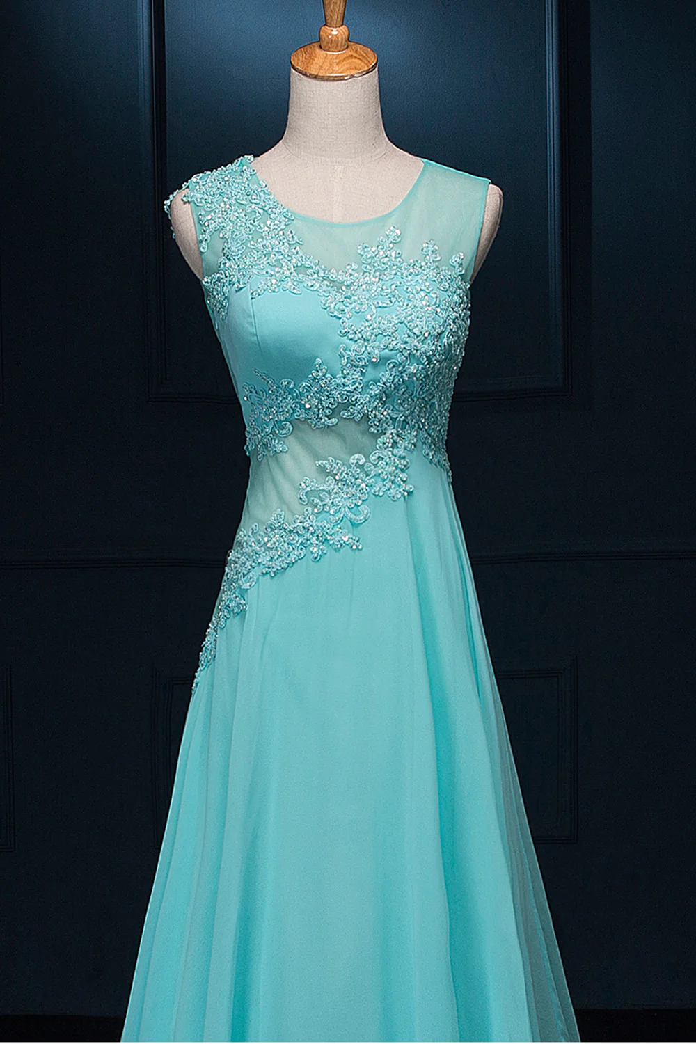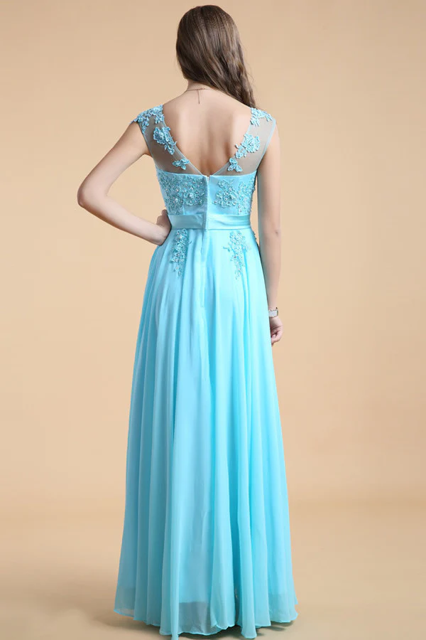 Light Sky Blue Chiffon Long Lace Beaded Prom Dress ED0828
