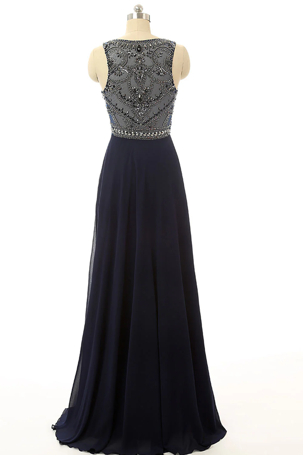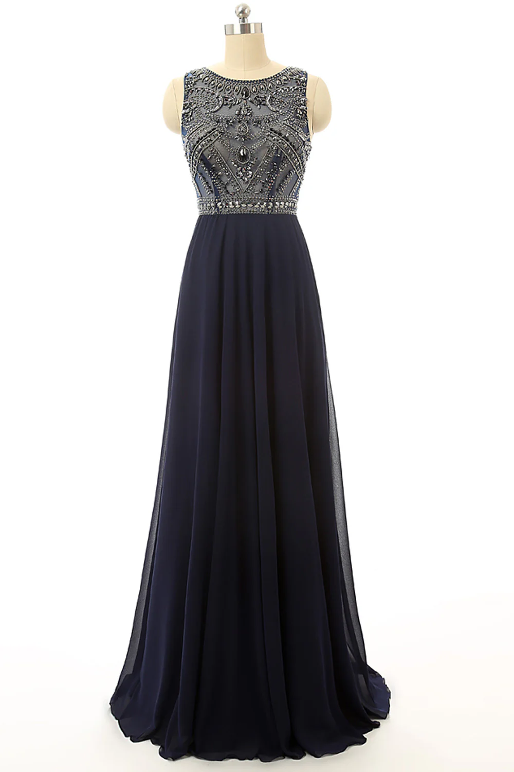 Cheap Prom Dresses Navy Blue Beaded Long Graduation Dresses ED0849