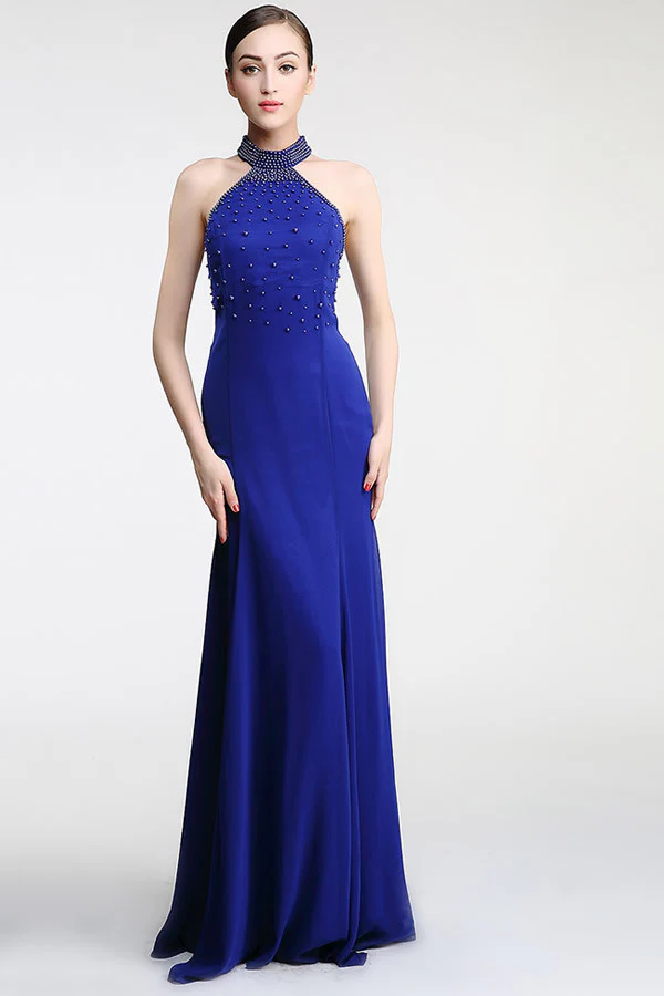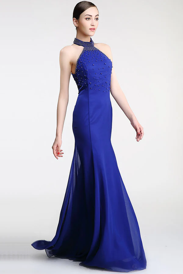 Halter Sheath Royal Blue Mermaid Long Prom Dress ED0843