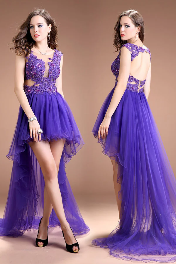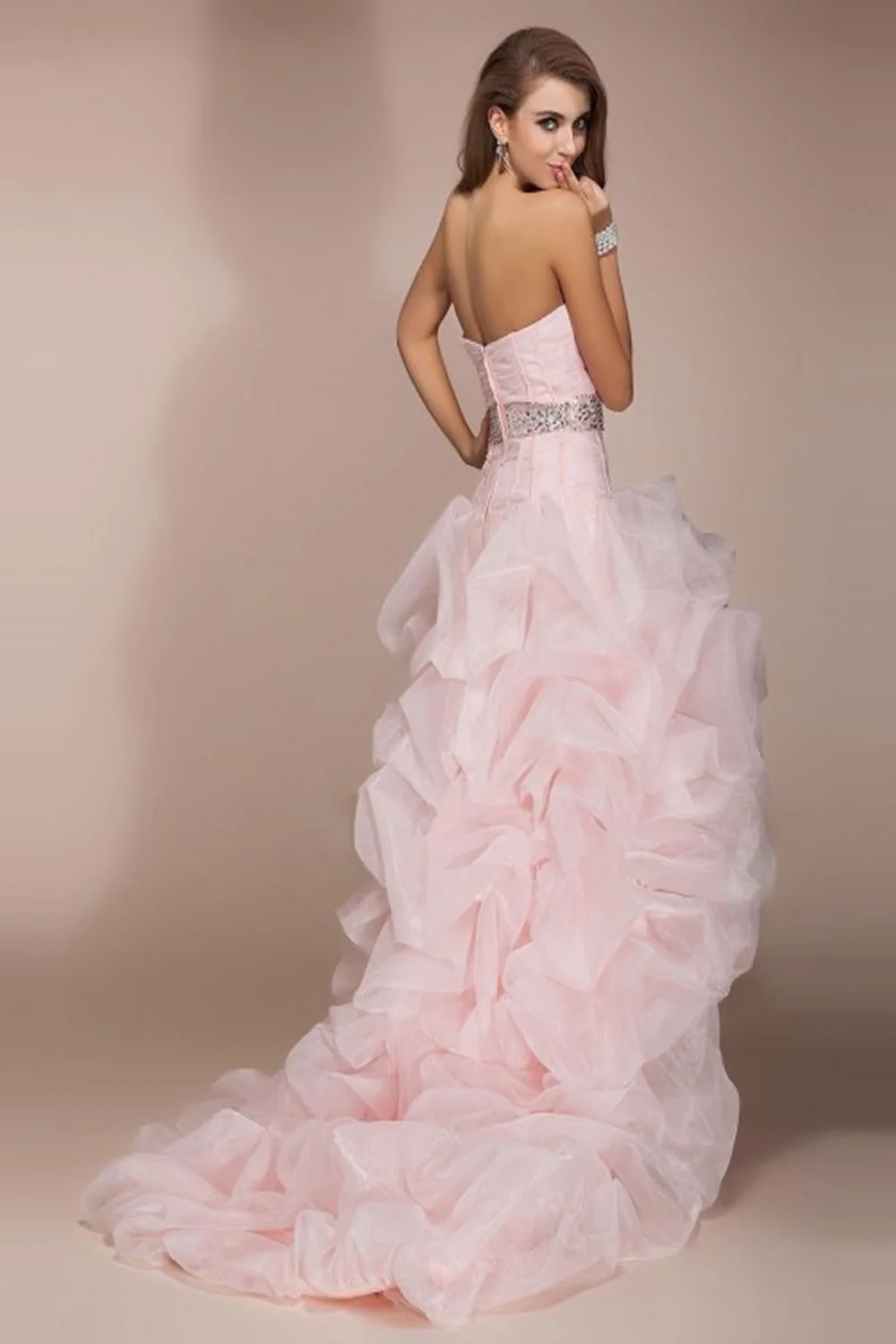Pink Backless Beaded High-Low Prom Dress ED0704