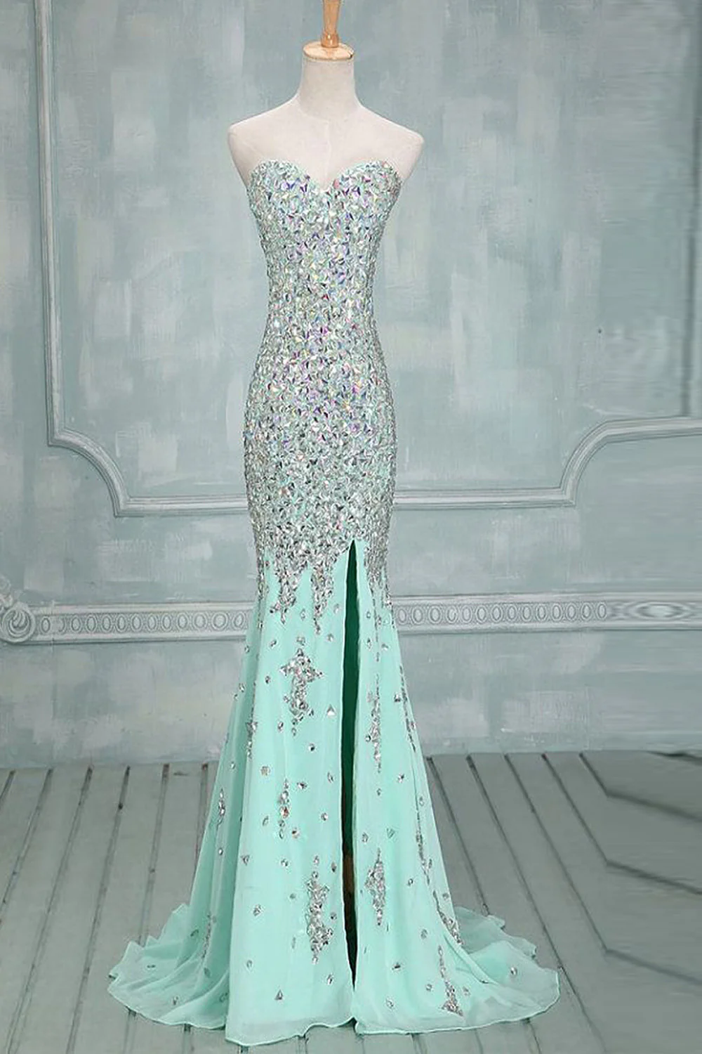 Mermaid Beaded Mint Front Split Long Prom Dresses Evening Dresses ED0646