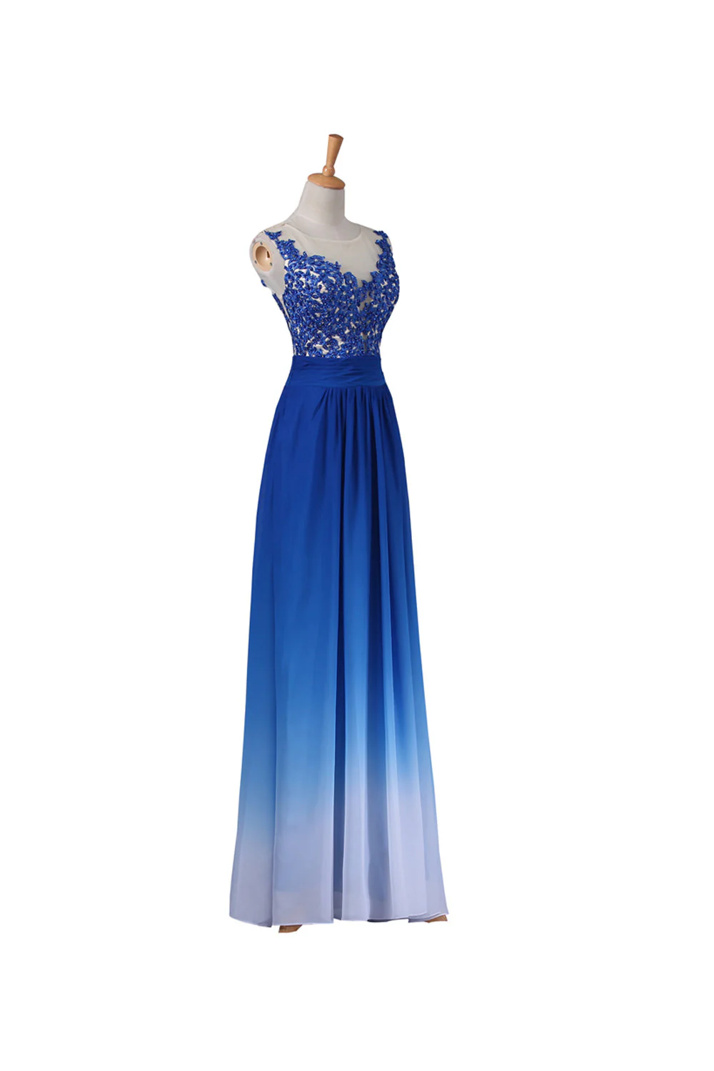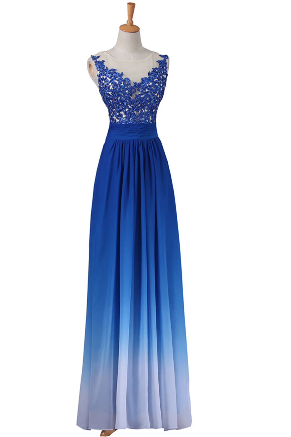 A-line Strapless Floor Length Royal Blue Ombre Chiffon Long Prom Dresses K143