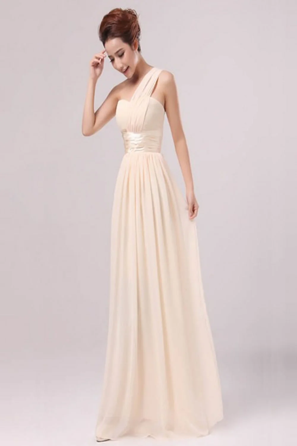 Pearl Pink Chiffon One Shoulder Empire Long Prom Dress ED0710