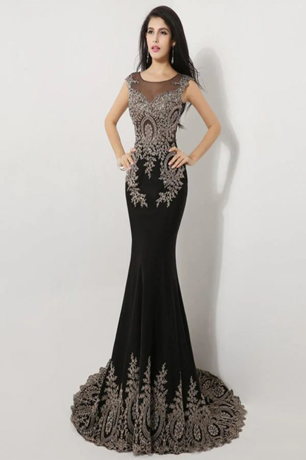 Black Long Sleeves Lace Mermaid Sheath Prom Dress ED0715