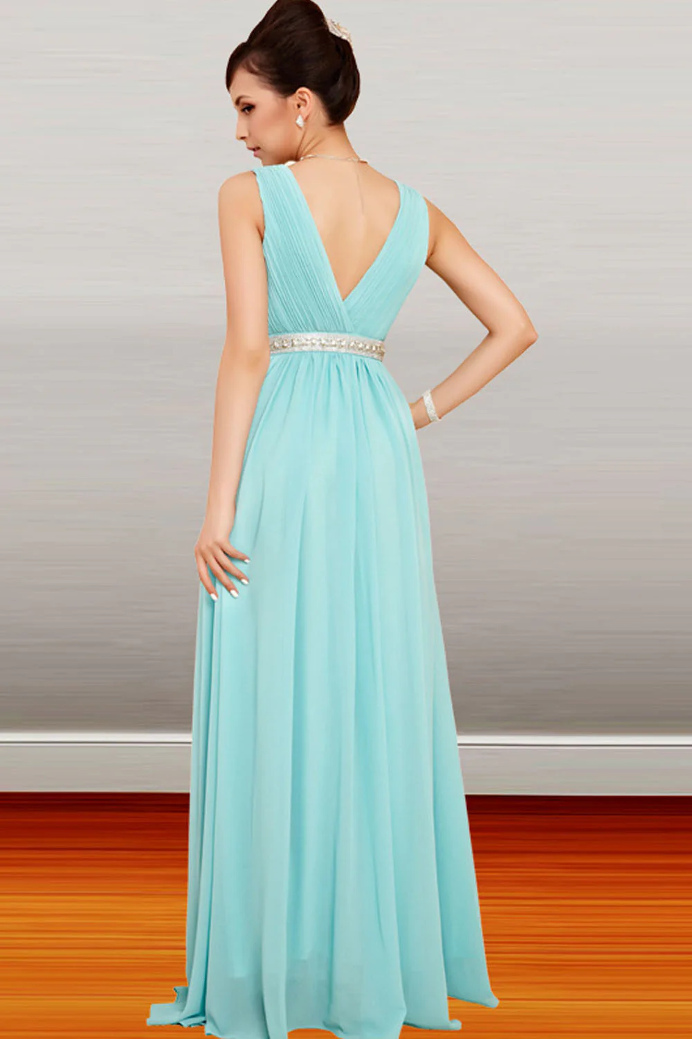 Sage Chiffon Long Beaded Empire Prom Evening Dresses ED0664