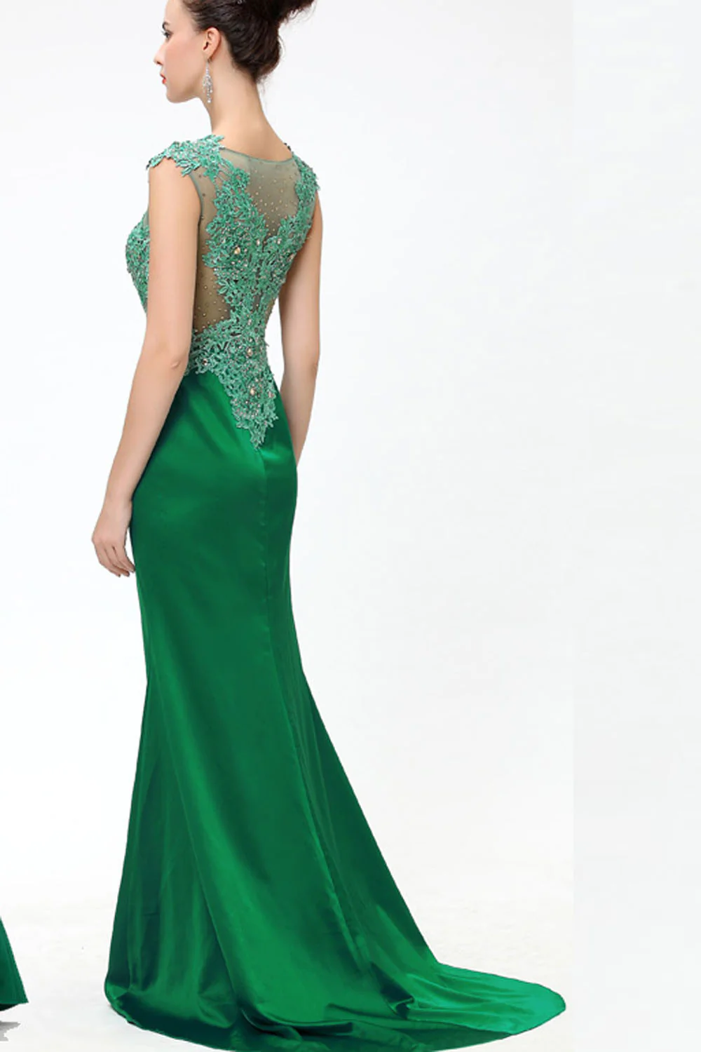 Green Lace Beaded See Through Mermaid Sexy Prom Dress ED0850