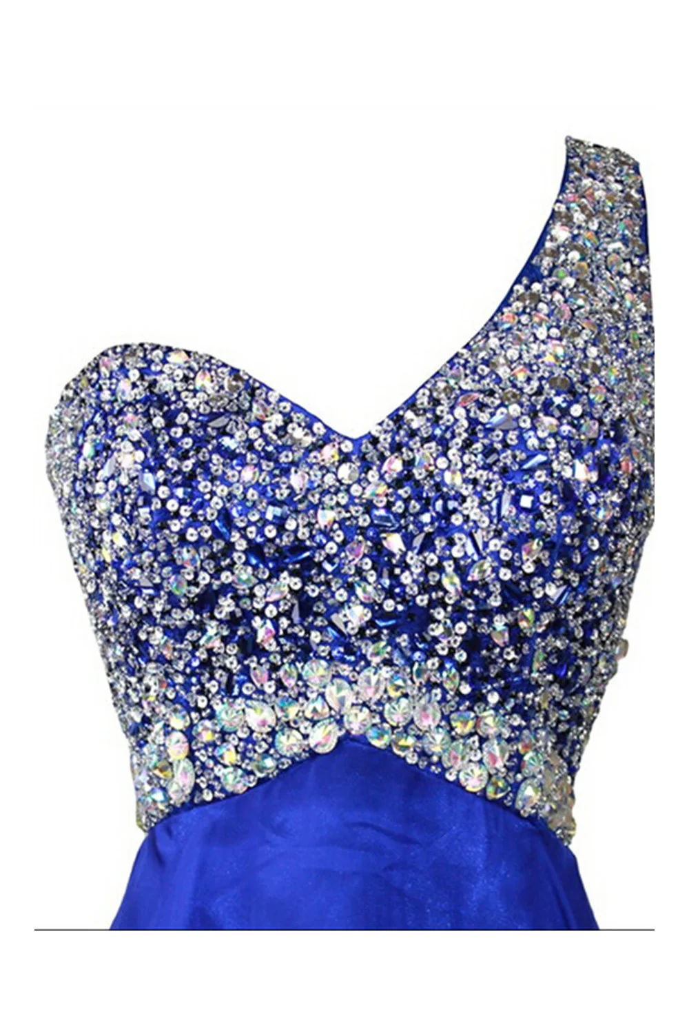 Royal Blue Beaded One Shoulder Long Prom Dresses ED0676