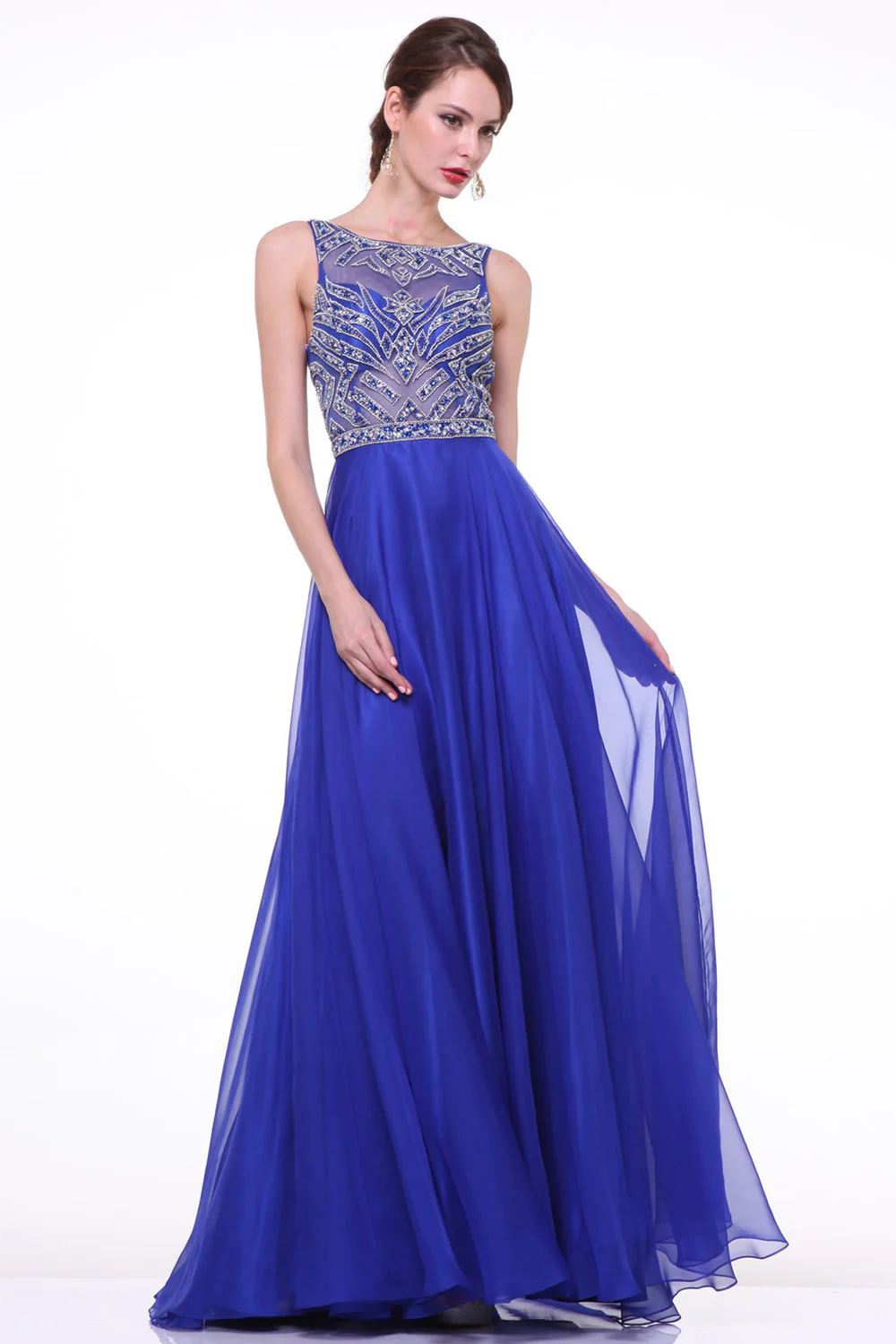 Chiffon Royal Blue Beaded Long Prom Evening Dresses ED0652