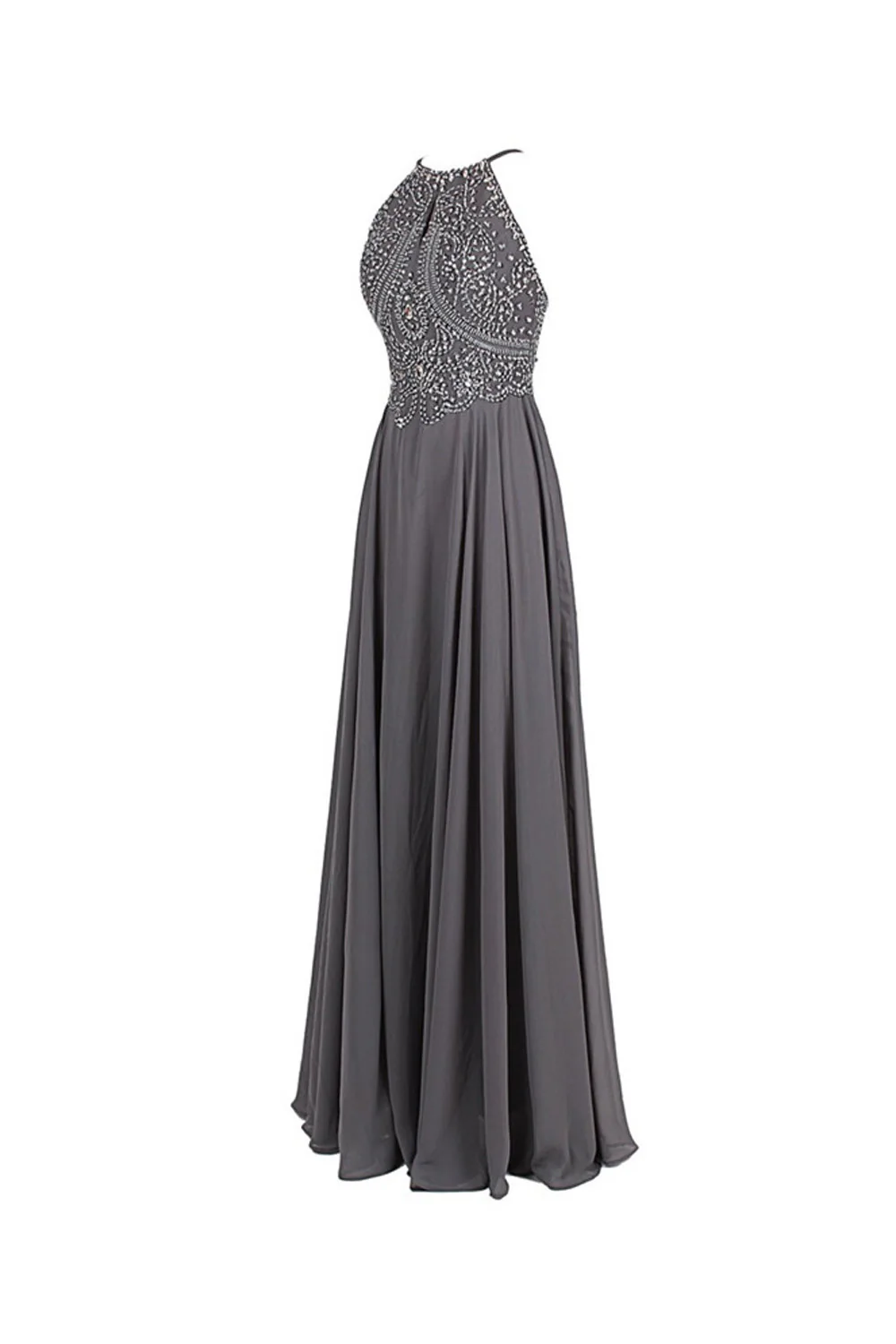 Top Selling Gray Chiffon Backless Cheap Long Evening Prom Dresses ED0651