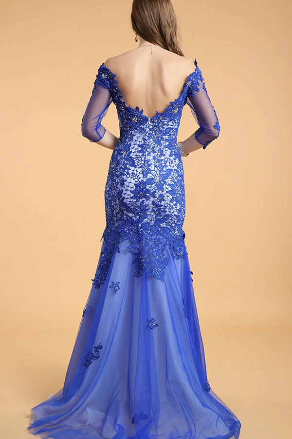 Sheath Royal Blue Mermaid Cap Sleeves Long Prom Dress ED0851