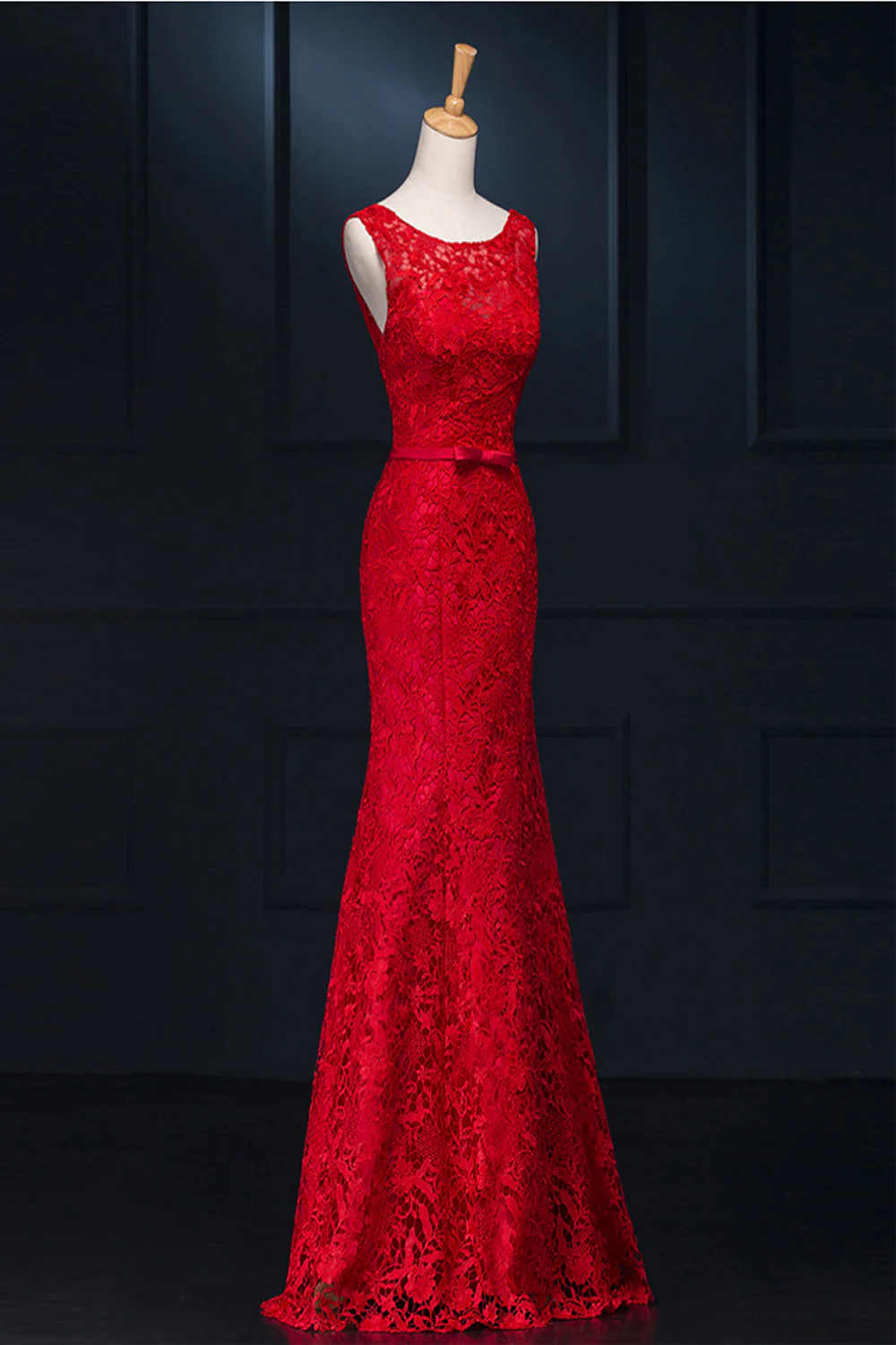 Sheath Real Sexy Red Lace Long Mermaid Backless Prom Evening Dresses ED0713