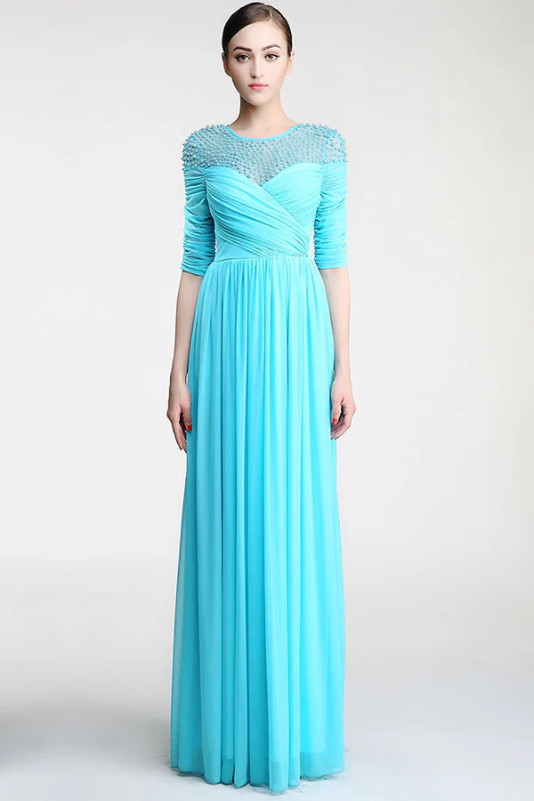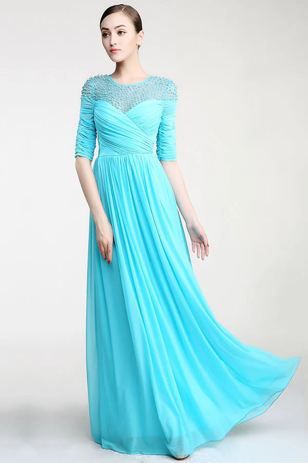 Real Nice Light Sky Blue Chiffon Half Sleeves Prom Dress ED0841