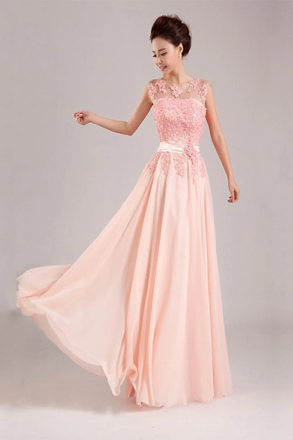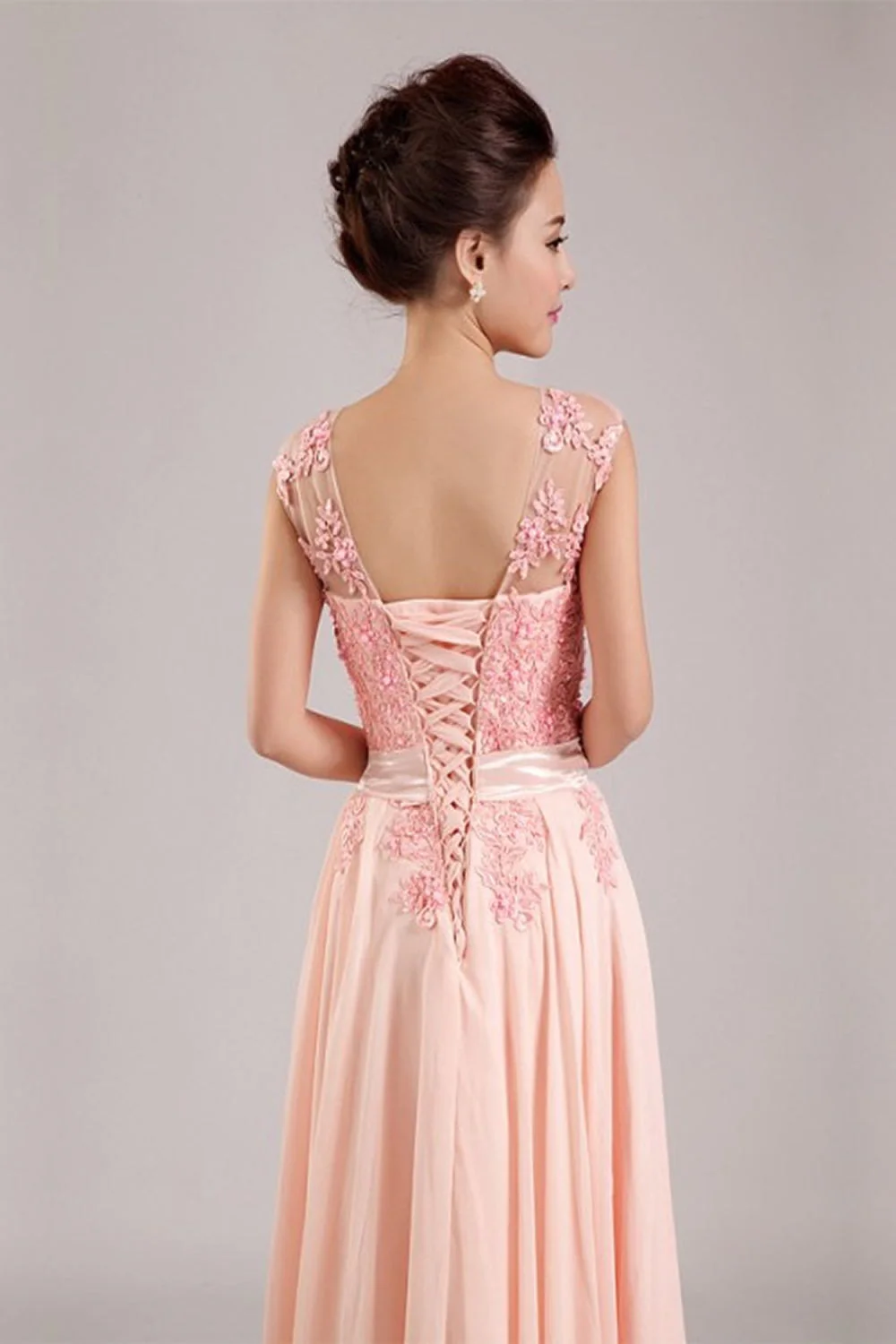 Blush Pink Lace Elegant Charming Formal Chiffon Prom Dress OK30