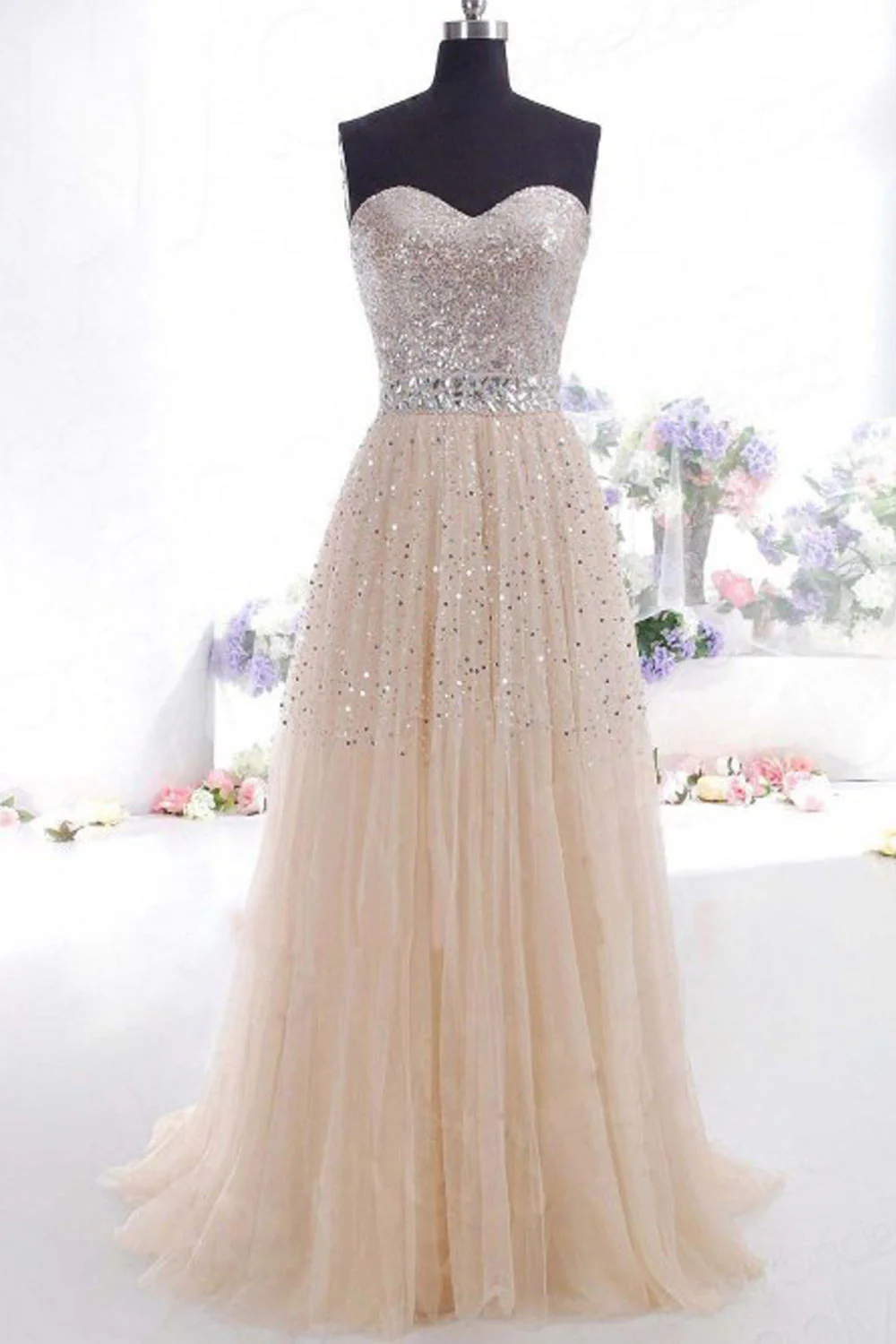 Strapless Long Tulle Beaded Charming Prom Dress K43