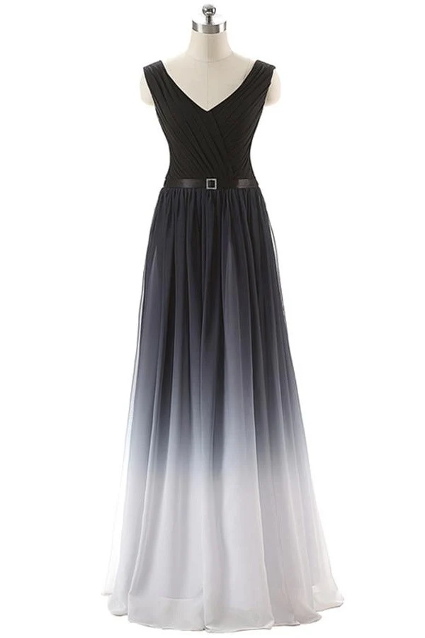 Open Back Long Gradient Chiffon Modest Prom Dress OK2