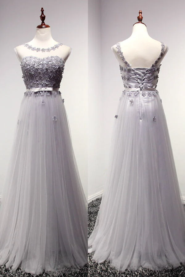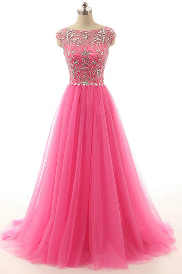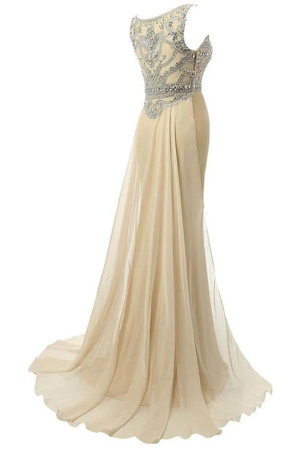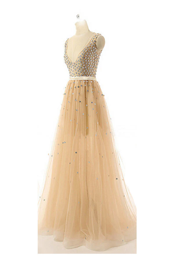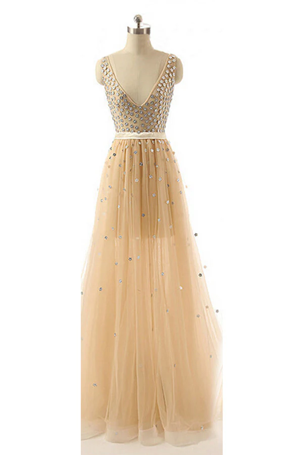 Long Beaded A-line Open Back Elegant Prom Dress OK5