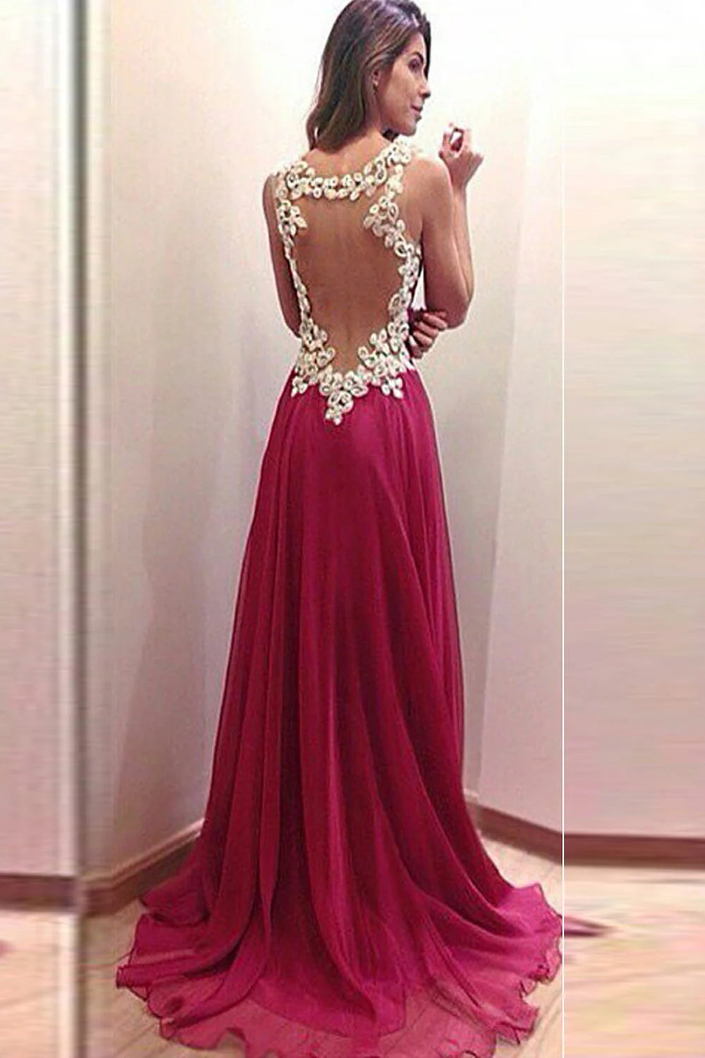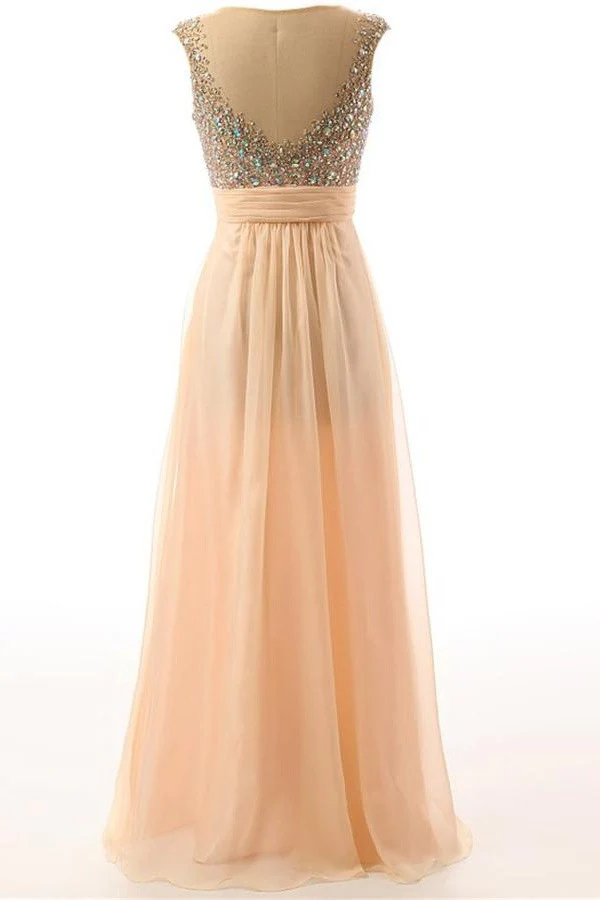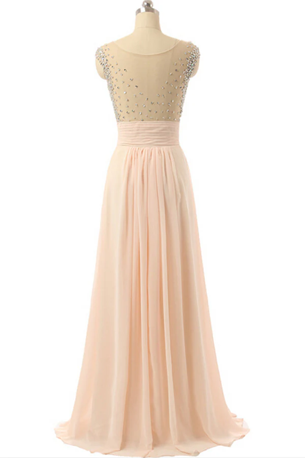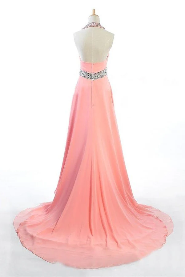 Pear Make Pretty Long Chiffon Beading Backless Prom Dress For Teens K54