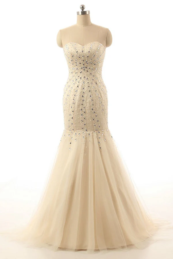 Mermaid Open Back Sweetheart Long Champagne Prom Dress ED1015