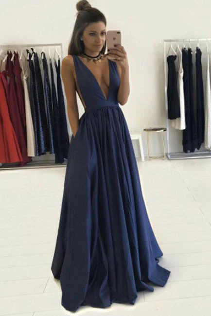 Sexy Deep V-neck Long A Line Prom Dresses Graduation Party Dress For Teens OK101