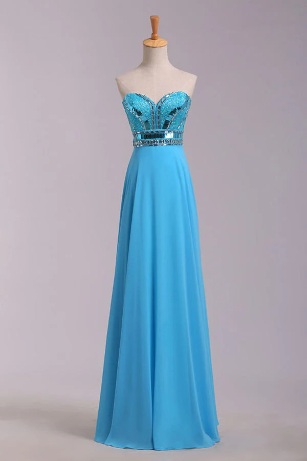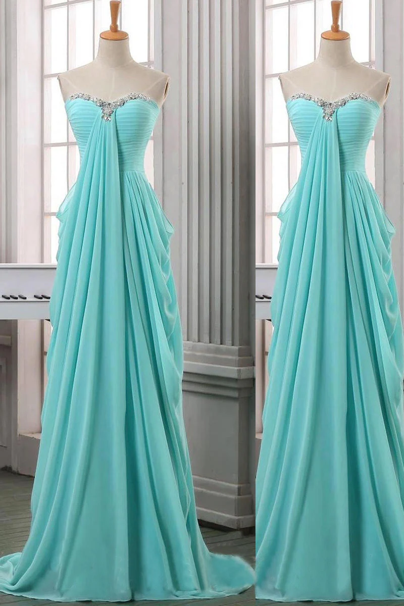 Sweetheart Long Chiffon Beading Elegant Cheap Prom Dress OK12