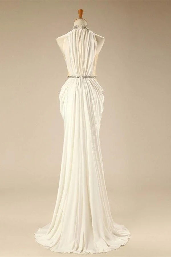 Charming Elegant White Halter Beaded Chiffon Long Prom Dress OK26