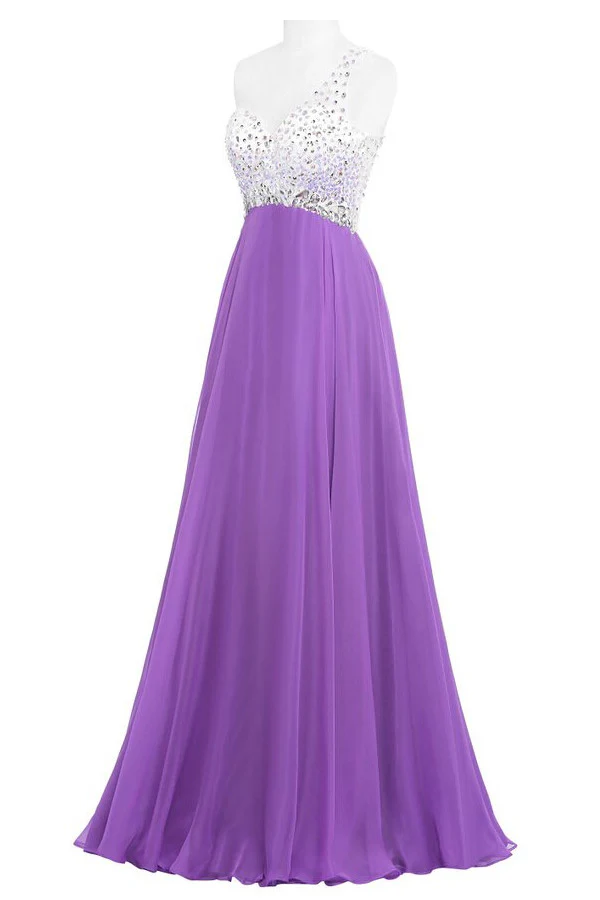Purple One Shoulder Beaded Long Prom Dress ED0964