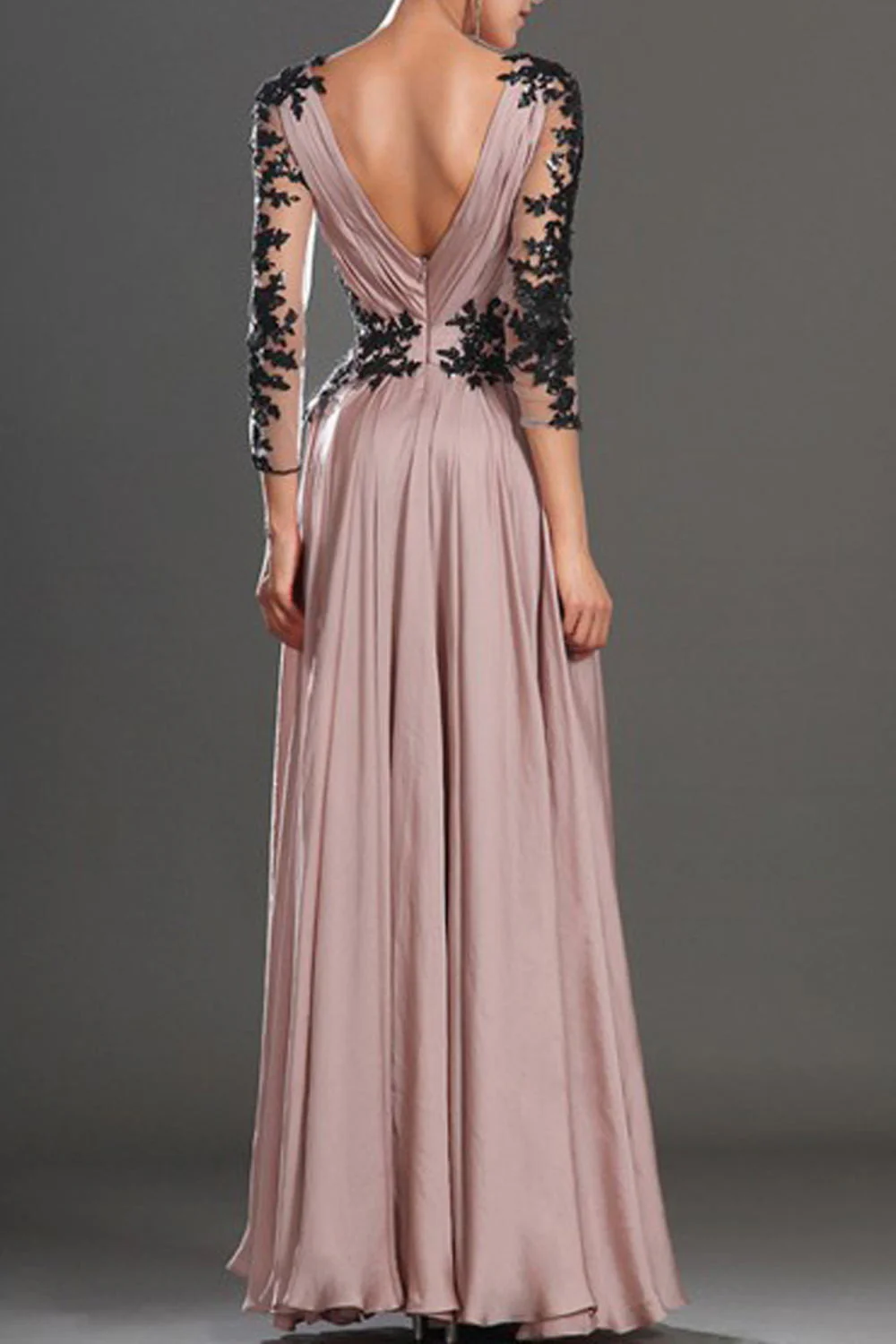 Real Beauty Long Sleeves V-neck Open Back Long Prom Dress K48