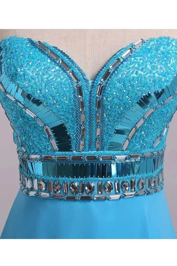 Newest Ice Blue Long Chiffon Beaded Formal Prom Dresses OK29