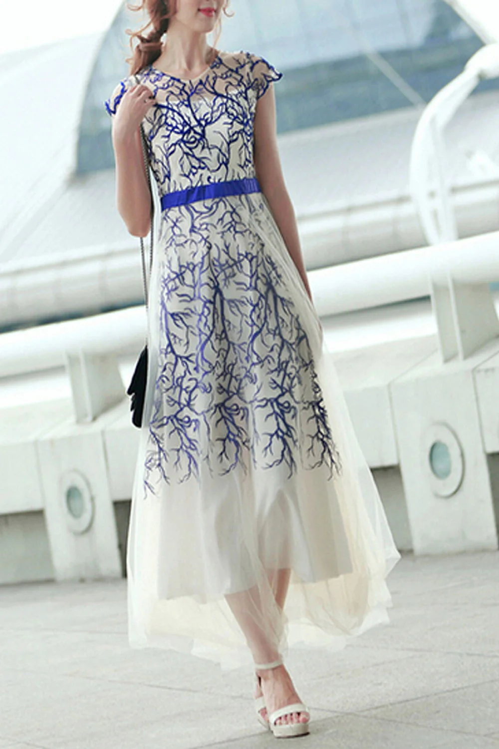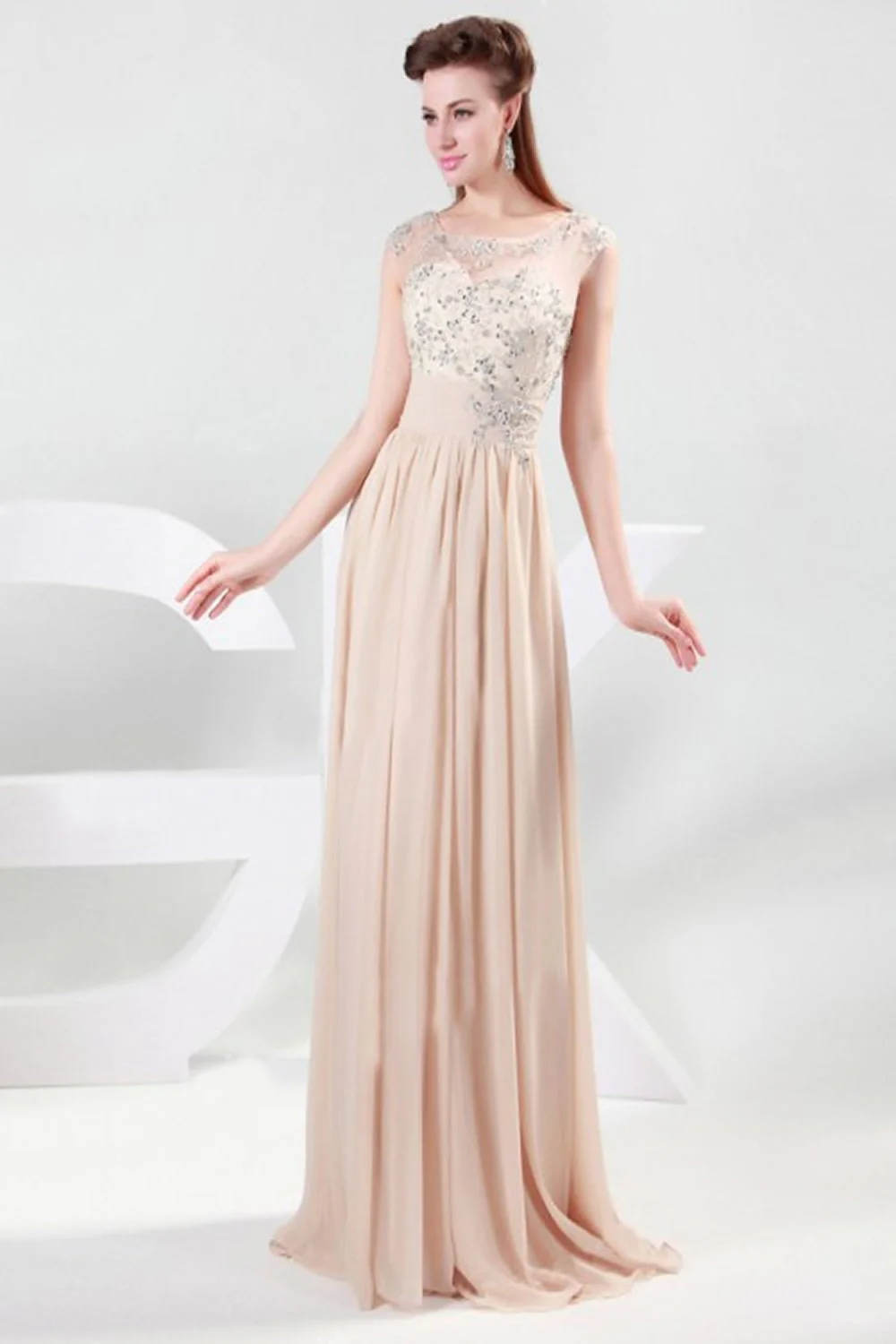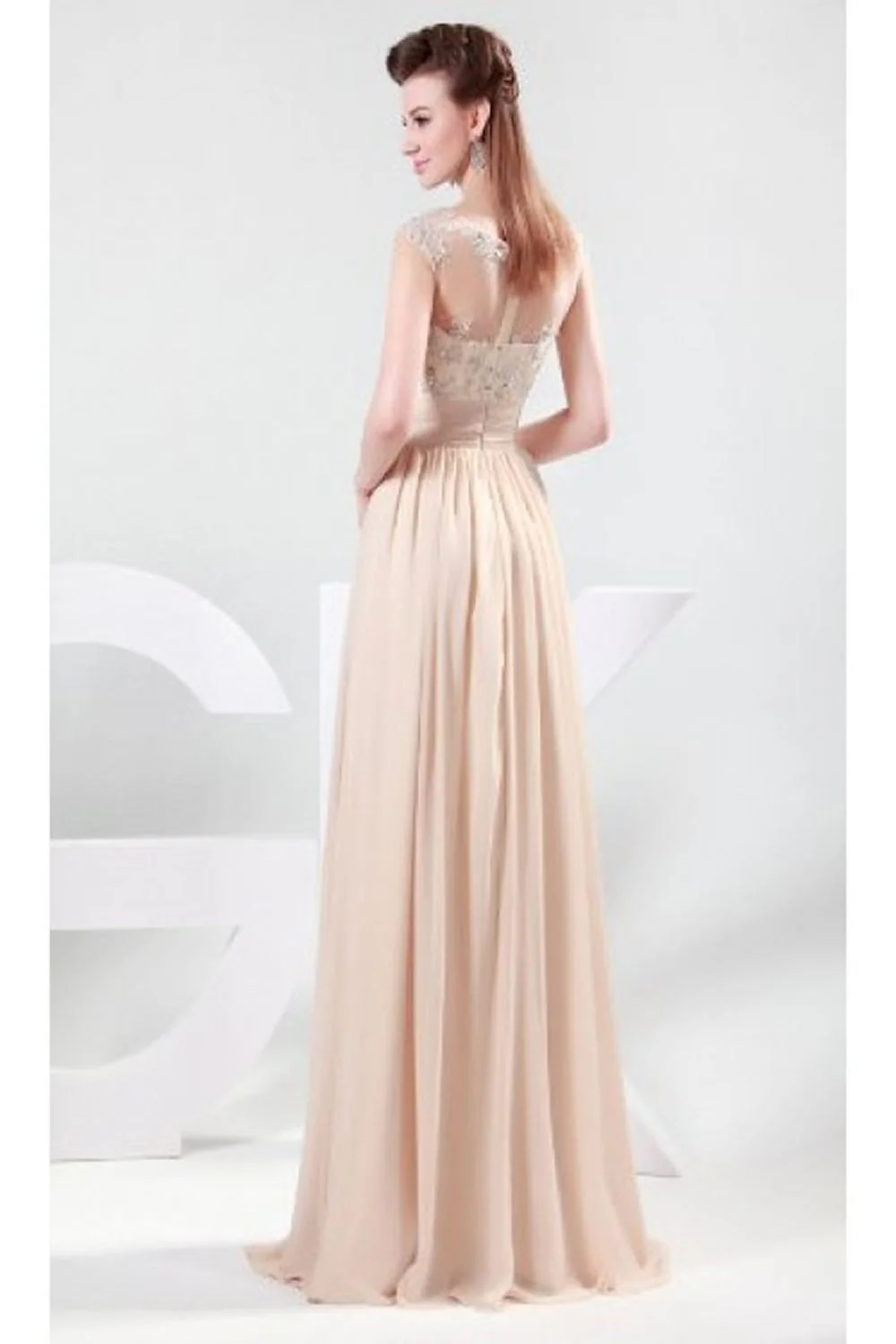 Cap Sleeves Chiffon Empire Waist Beaded Long Prom Dress ED0960