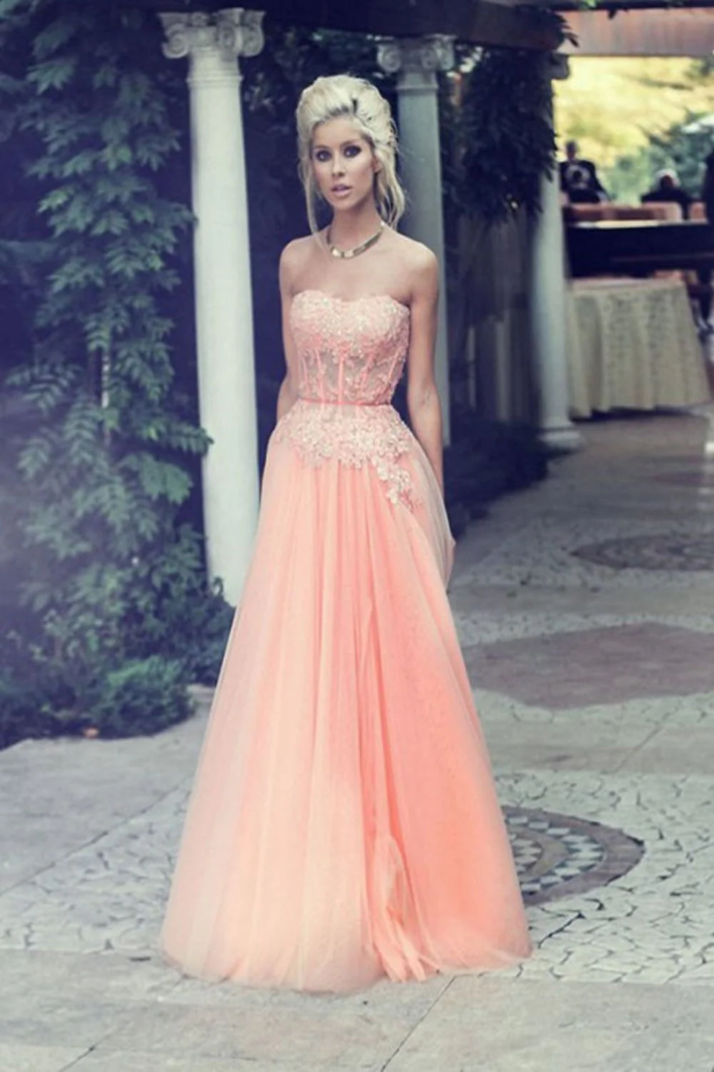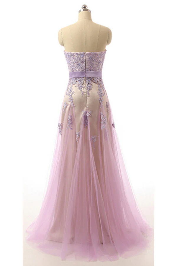 Pretty Pink Long Sweetheart Lace Beading Open Back Prom Dress K72