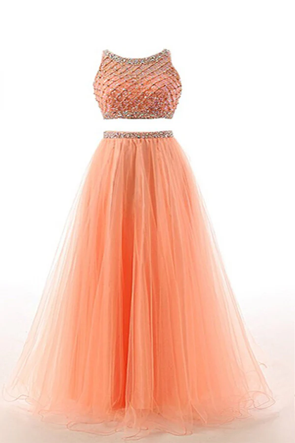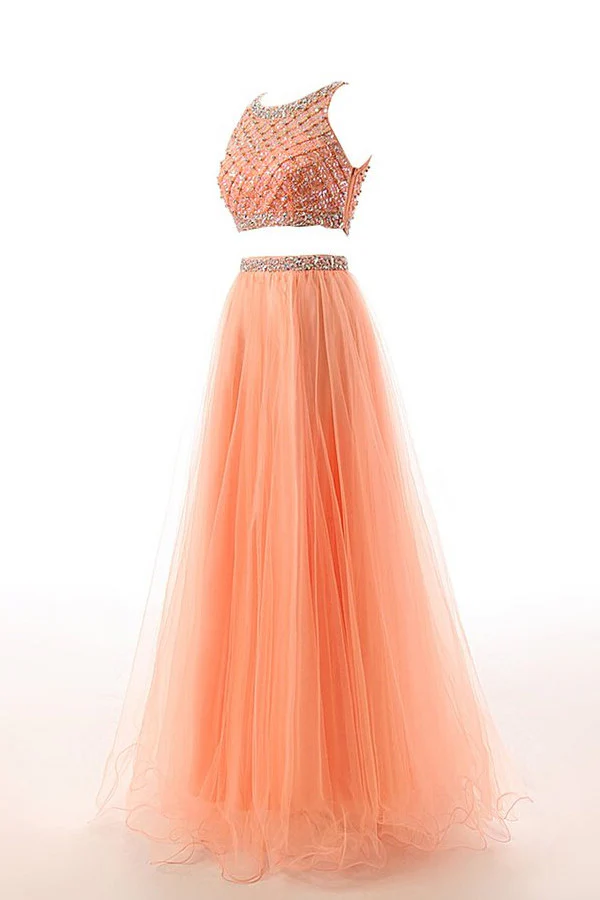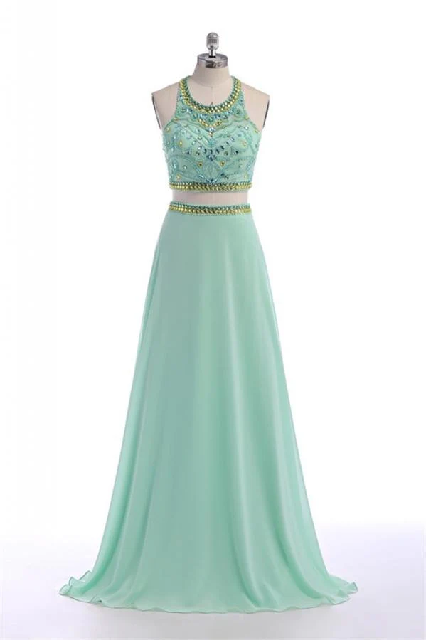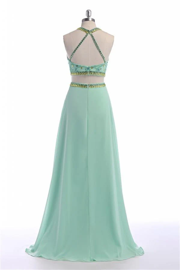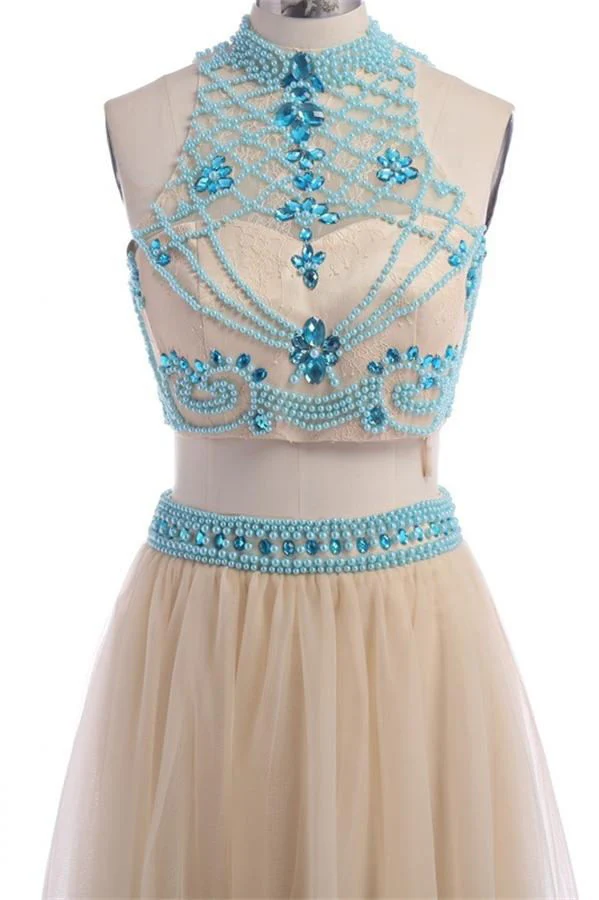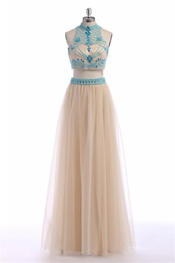 Halter Two Piece Beaded Long Prom Dresses OK16