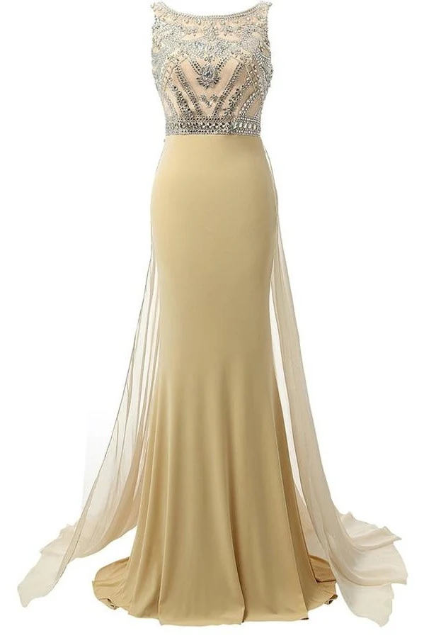 Beauty Mermaid Champagne Long Beaded Prom Party Dress OK4