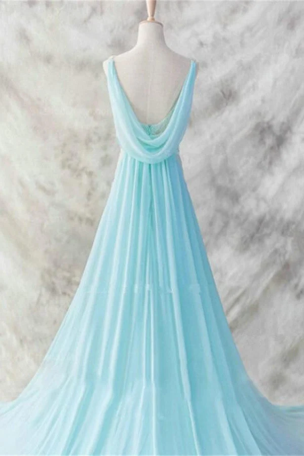 Light Sky Blue Backless Chiffon Long Beaded Prom Dress OK1