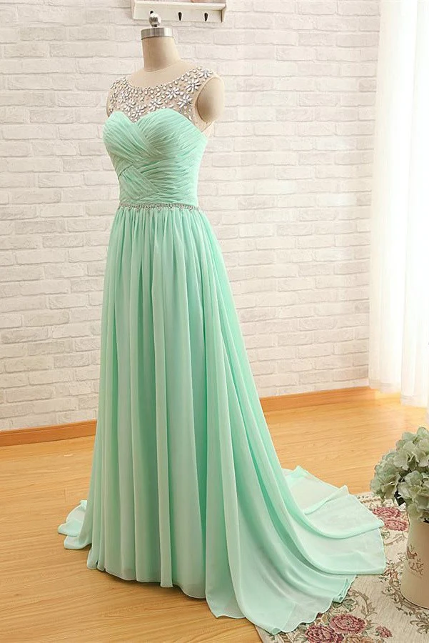 Mint Beaded Charming Backless Cheap Long Chiffon Prom Dress OK24