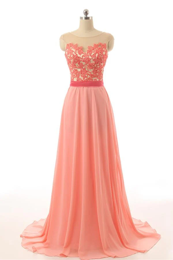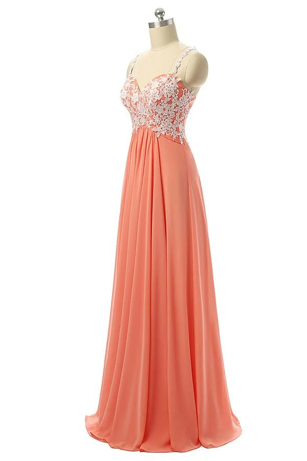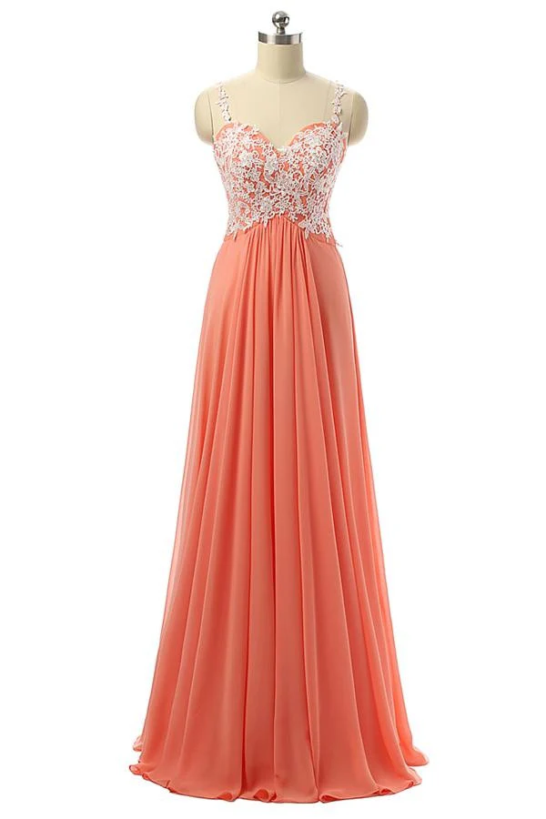 Beautiful Coral Chiffon White Lace Long Prom Dress With Straps K147
