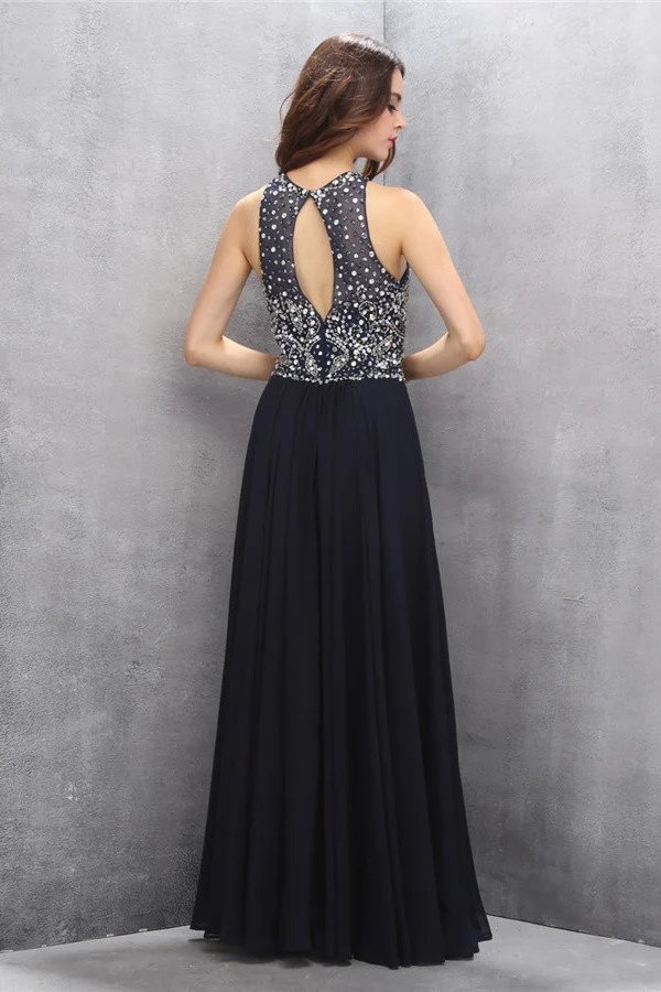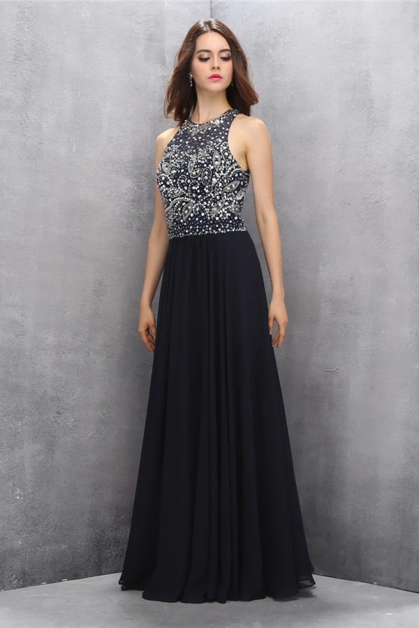 Modest Black Chiffon Beading Charming Long Prom Dress K620