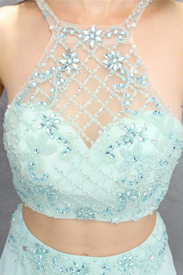Mint Chiffon Two Pieces Beading Backless Formal Prom Dress K623