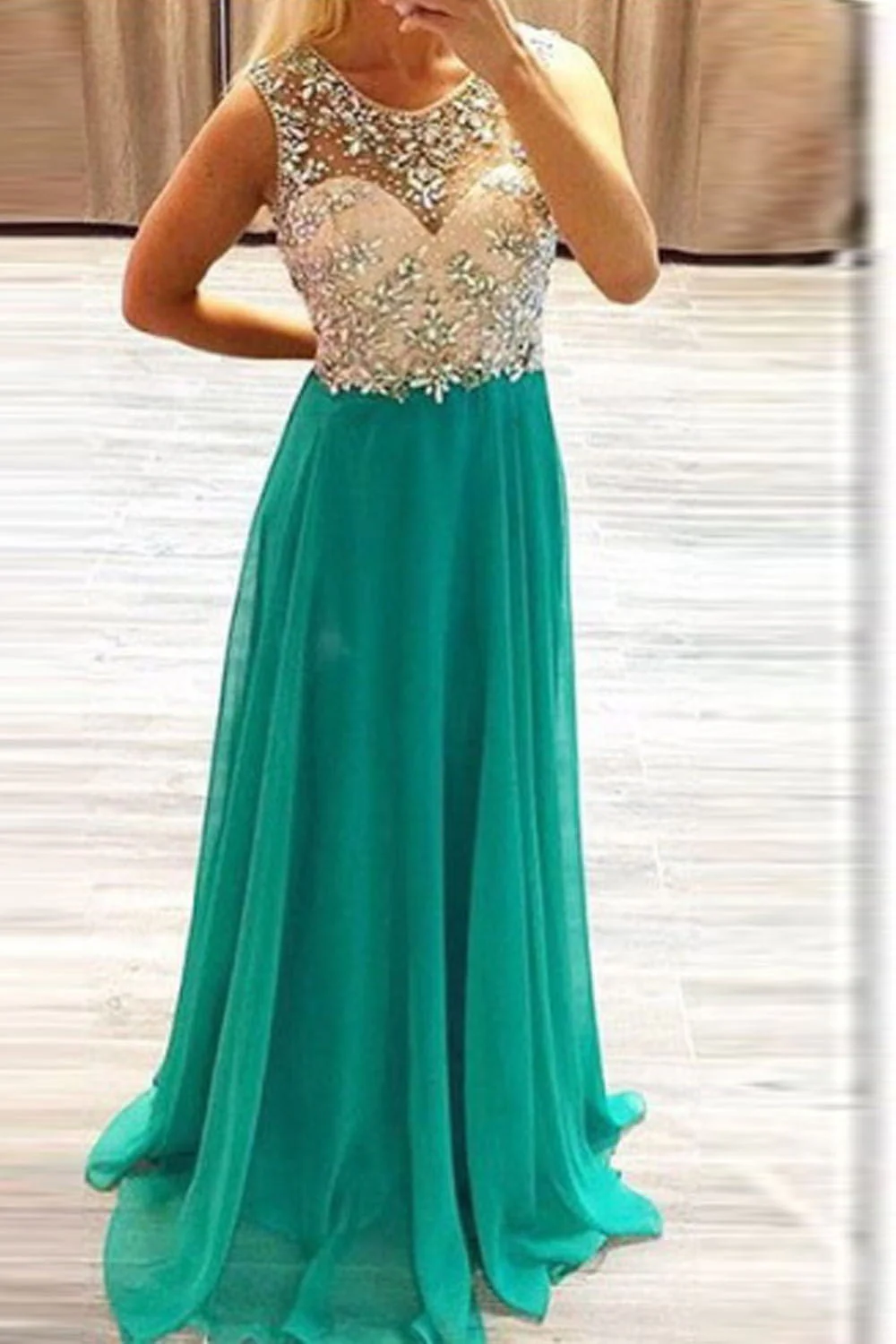 Real Beautiful Mint Long Chiffon Beading Elegant Prom Dress K172
