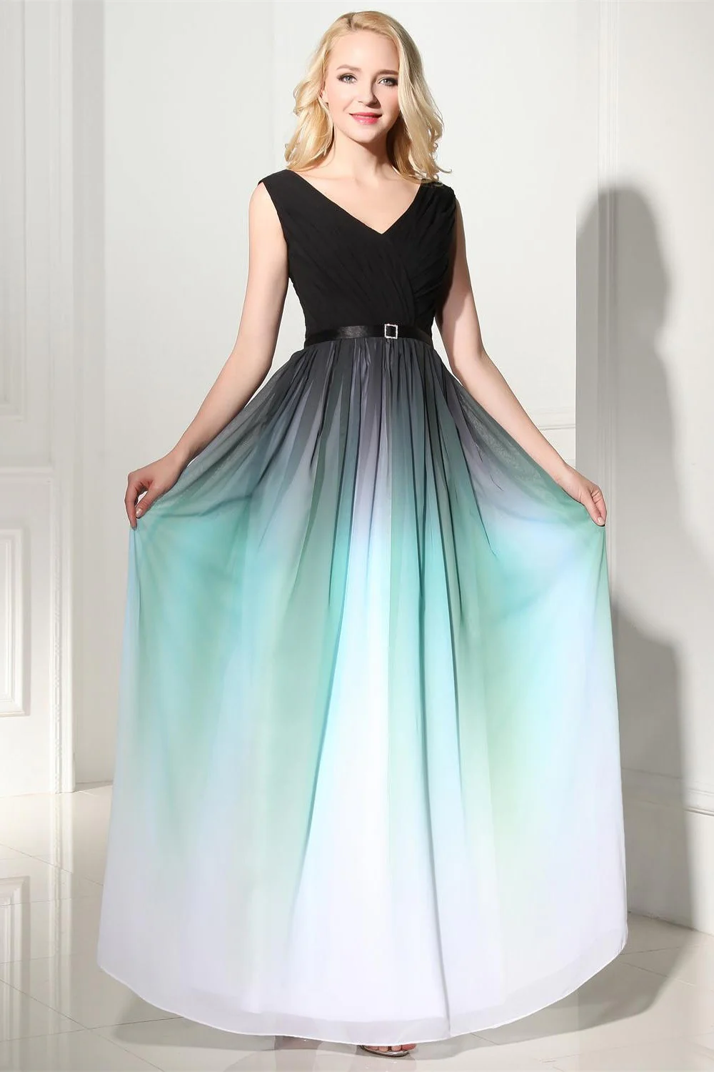 Pretty V-neck Back Up Lace Ombre Chiffon Long Prom Dresses K119