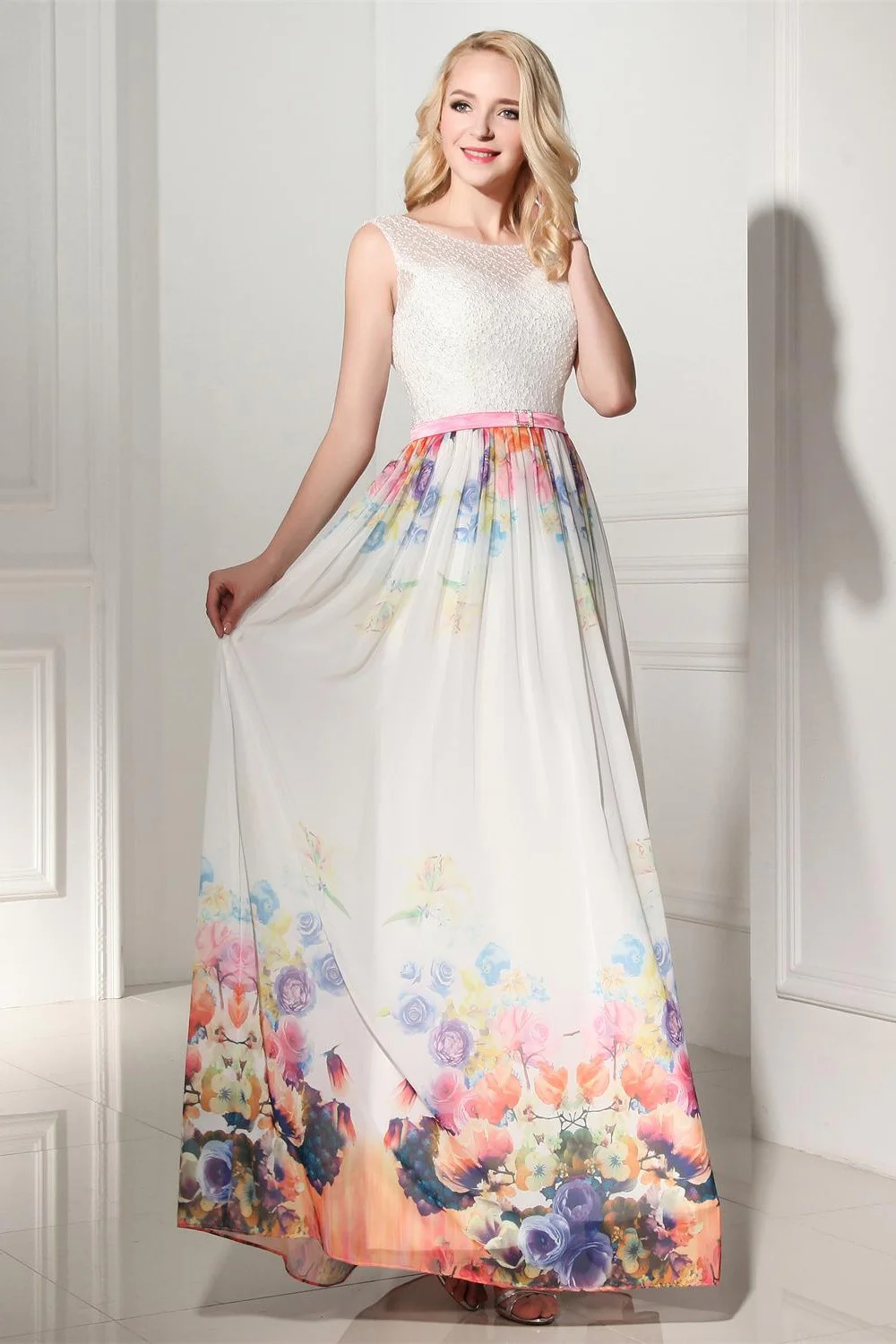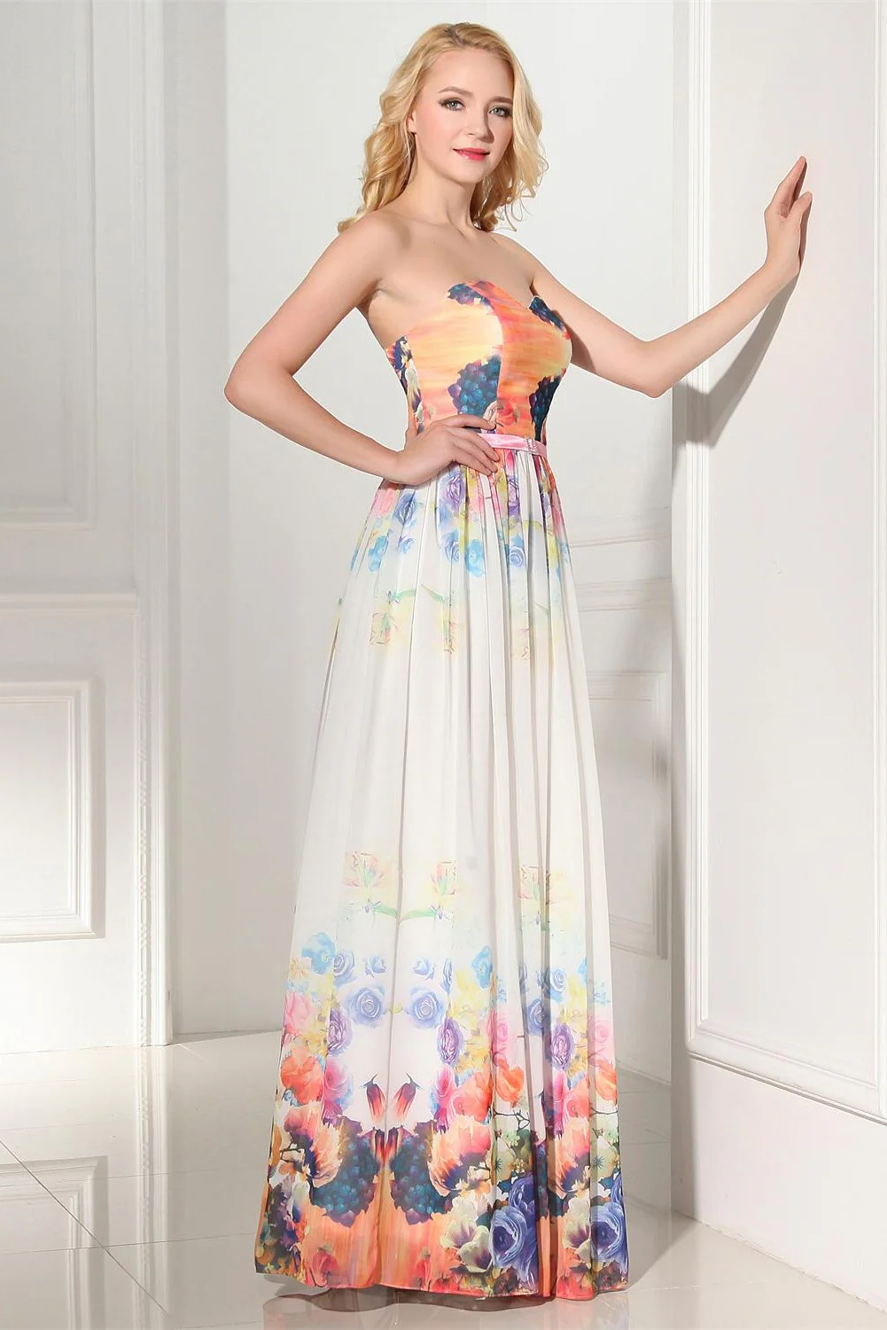 Newest Beautiful Cheap Sweetheart Printed Chiffon Prom Dresses K118