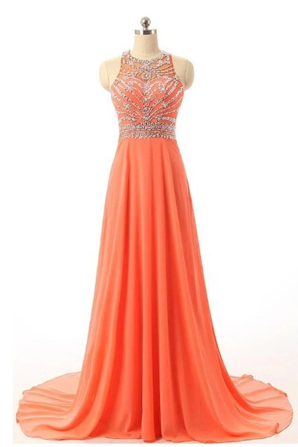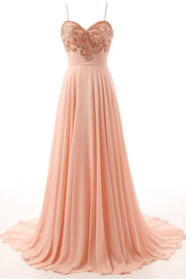 Spaghetti Straps Long Orange Chiffon Beading Prom Dress K167