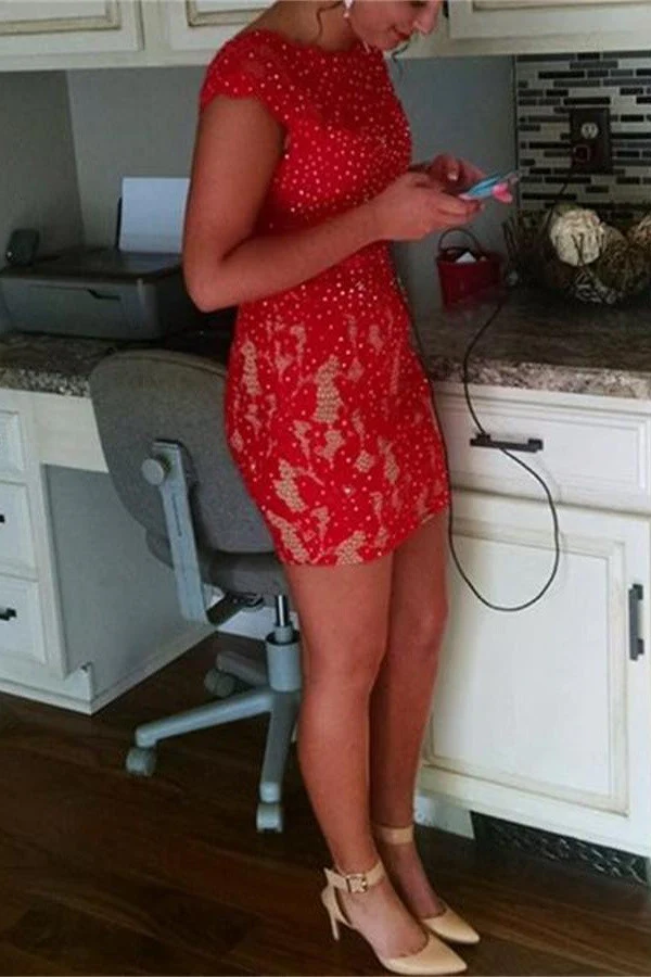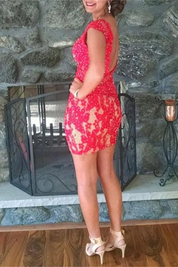 Red Mermaid Lace Beading Sheath Backless Formal Homecoming Prom Dress K469