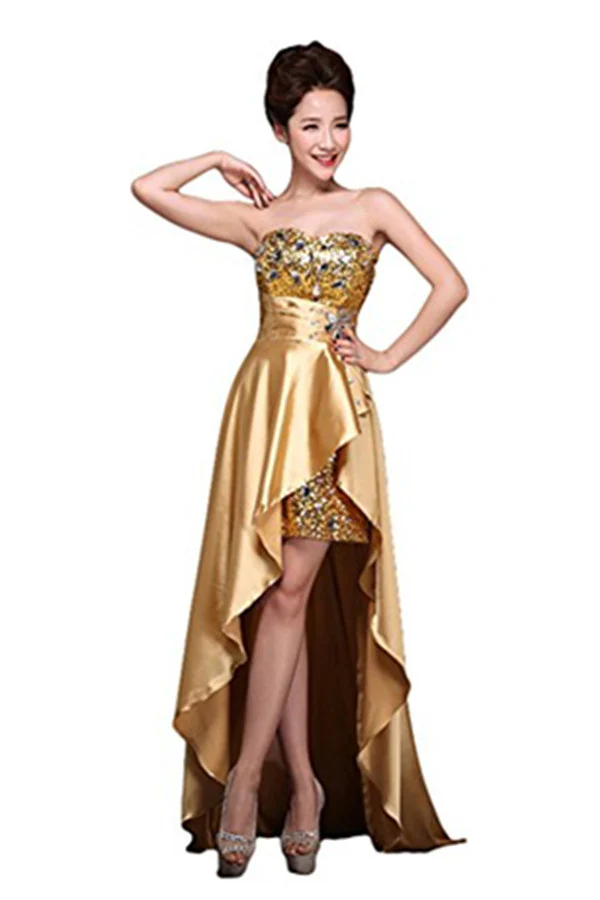 Sweetheart Gold Long Beading Handmade Prom Dresses Evening Dresses K681
