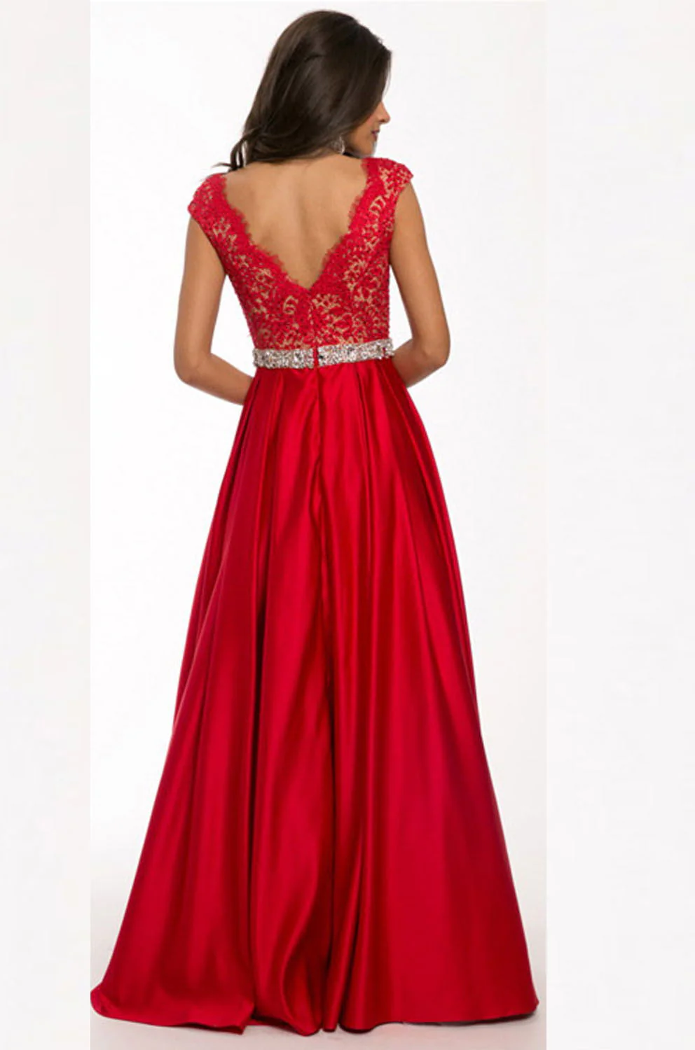 Red Lace Tulle Long Bow Sash Charming Prom Dress K87