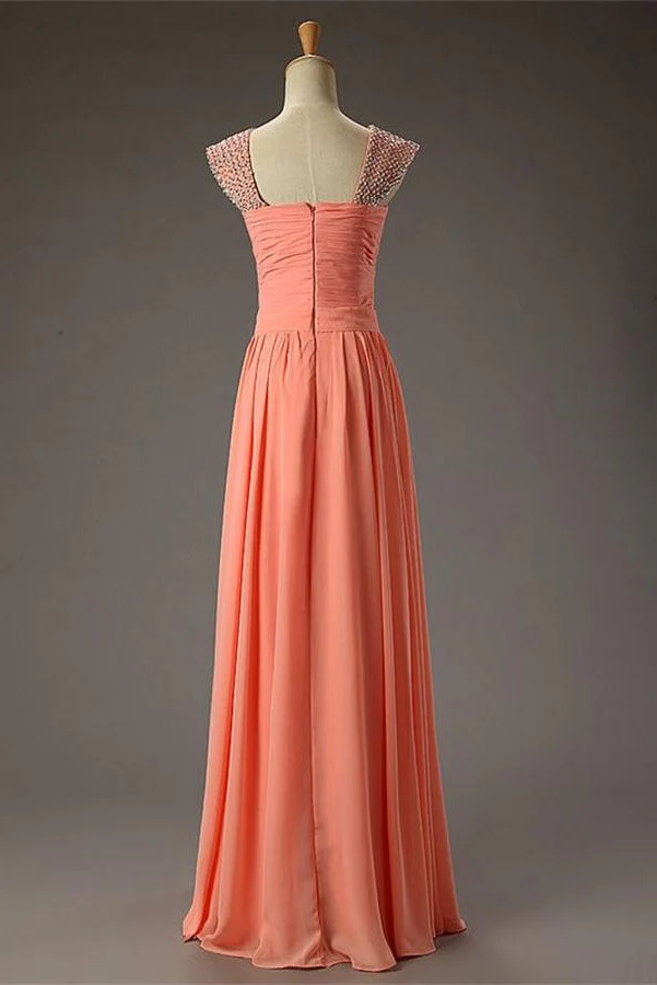 Cap Sleeves Orange Long Chiffon Beading Prom Dresses K102