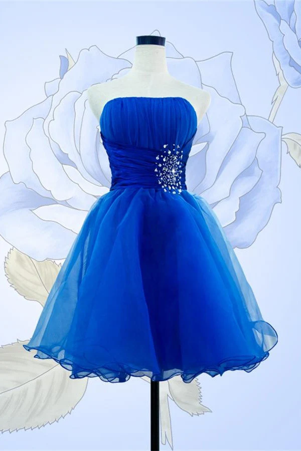 Royal Blue Short Prom Dresses Sparkly Strapless Homecoming Dress K279