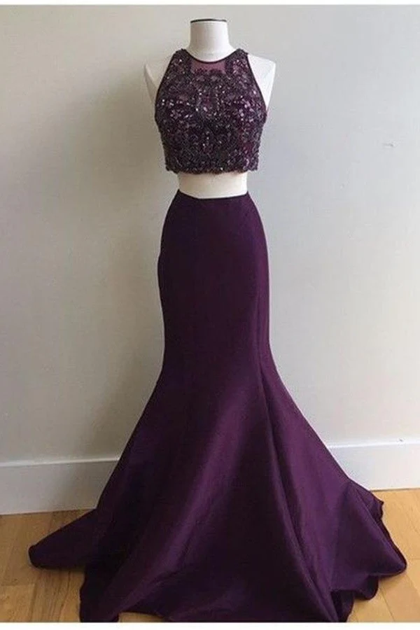 Dark Plum Mermaid 2 Pieces Sparkly Long Prom Dress K149