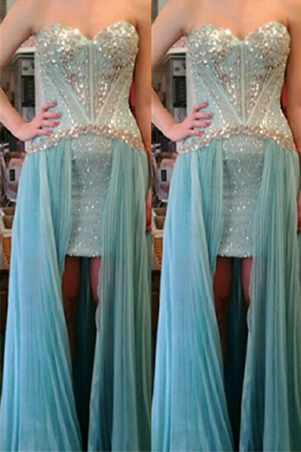 Real Beautiful Long Front Split Sweetheart Handmade Backless Prom Dress K661
