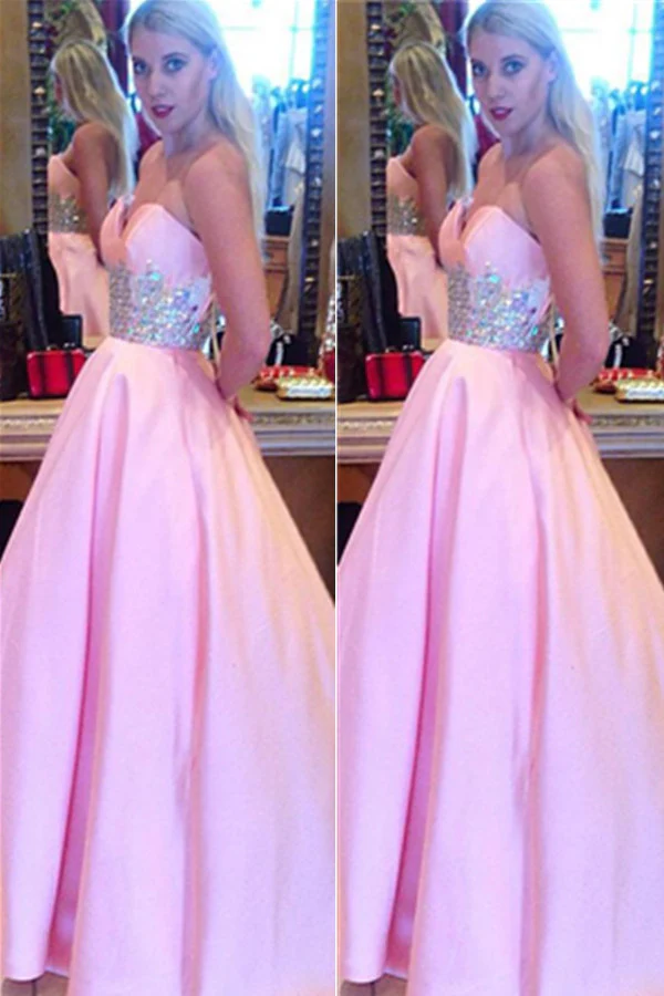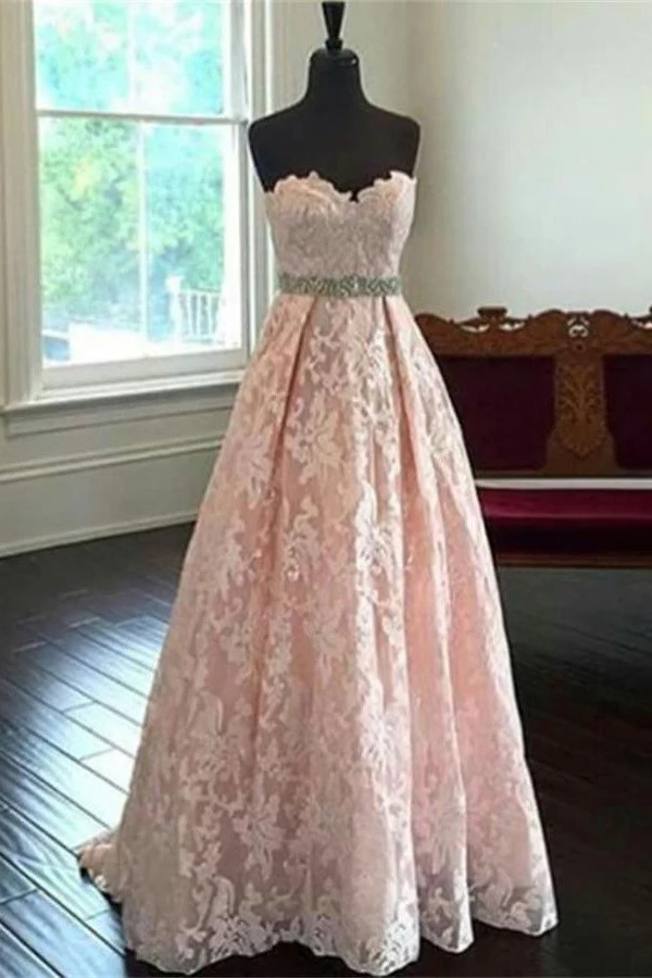 Sweetheart Lace Beading Long A-line Pink Handmade Cheap Prom Dress K691